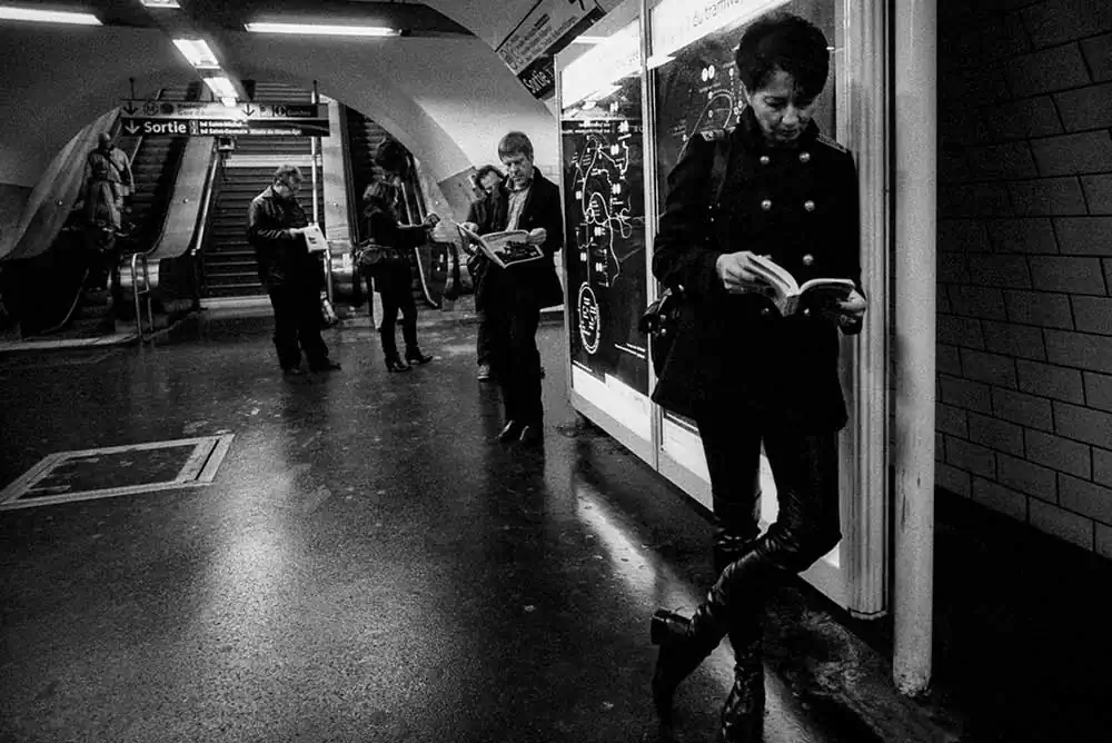 The protagonists are absorbed in their thoughts with their heads bowed or intent on looking with the absent gaze of those who look but do not see, as if they were imprisoned in their inner world. We are almost facing an aquarium in which motionless and / or unconscious fish swim. Loneliness is almost palpable and silence seems to saturate every space of the environment in a metaphysical suspension. People anonymous, unknown, isolated, closed in themselves, unable to communicate, who despite being close to each other almost never interact with each other. The scene is still, extracted from the present and frozen out of time.