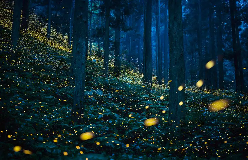 The spectacle of fireflies, an endemic species of Japan, illuminating the summer forest is like a scene where the stars in the sky twinkle repeatedly. That sight is so mesmerizing that it makes one forget the awe of the dark forest. It is the radiant brilliance of life that lasts only ten days in summer.