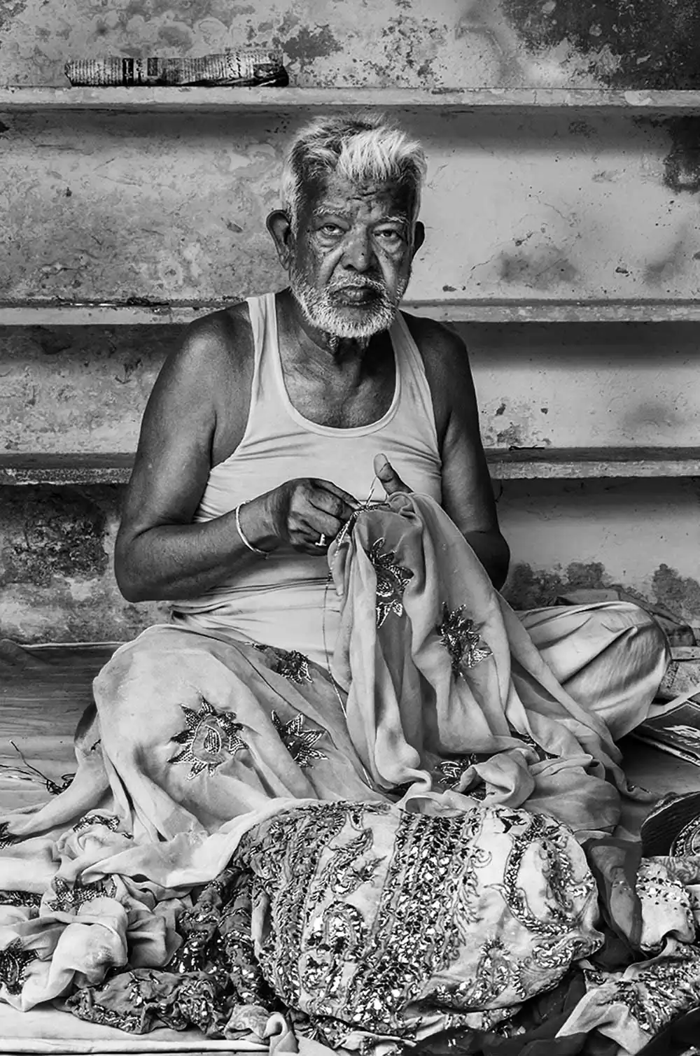 The artisans who perform this art were at the time referred to as Badlas. They perform this craft by inserting metallic wires of gold and silver into the fabric eventually twisting it to create magnificent metallic embroidery on the fabric.The story I am trying to tell through my photographs is the story of these artisans — their downfall, struggle, and survival.