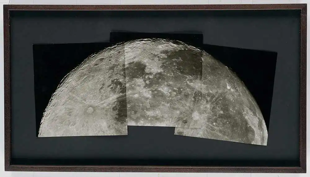 Further Space Age lots include a sequence of 10 photographic assemblages, each work depicting a separate section of the Moon (estimate: $5,000 to 7,500) and a collection of 67 photographs, arranged in mini-albums and frames, documenting the Apollo 11 Moon landing, many with date stamps on verso for 1969 (estimate: $4,000 to 6,000). [Swann Galleries]