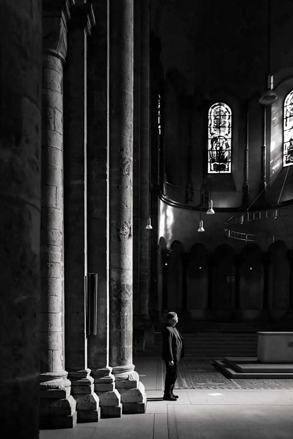 The architecture in the background forms the stage upon which the human element is the actor.  A specific person is not necessarily the main focus of the story, but represents the relationship between human presence and the surrounding built environment. This combination generates the narrative.