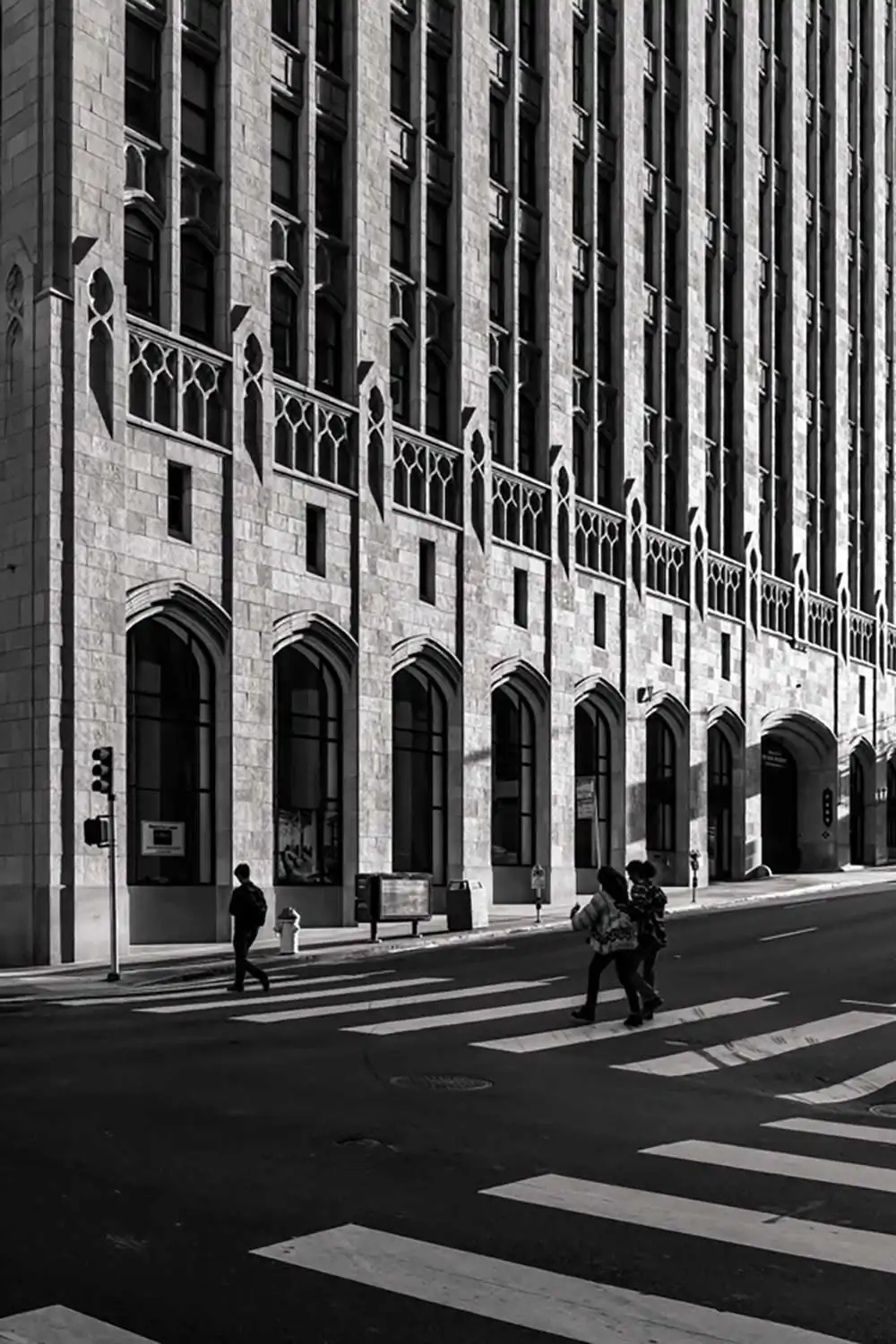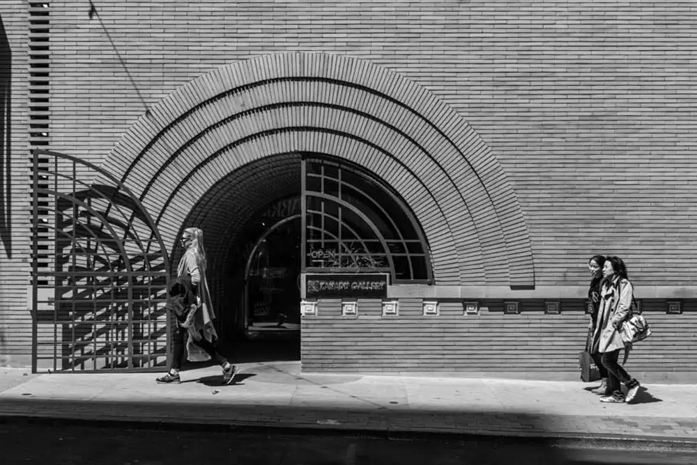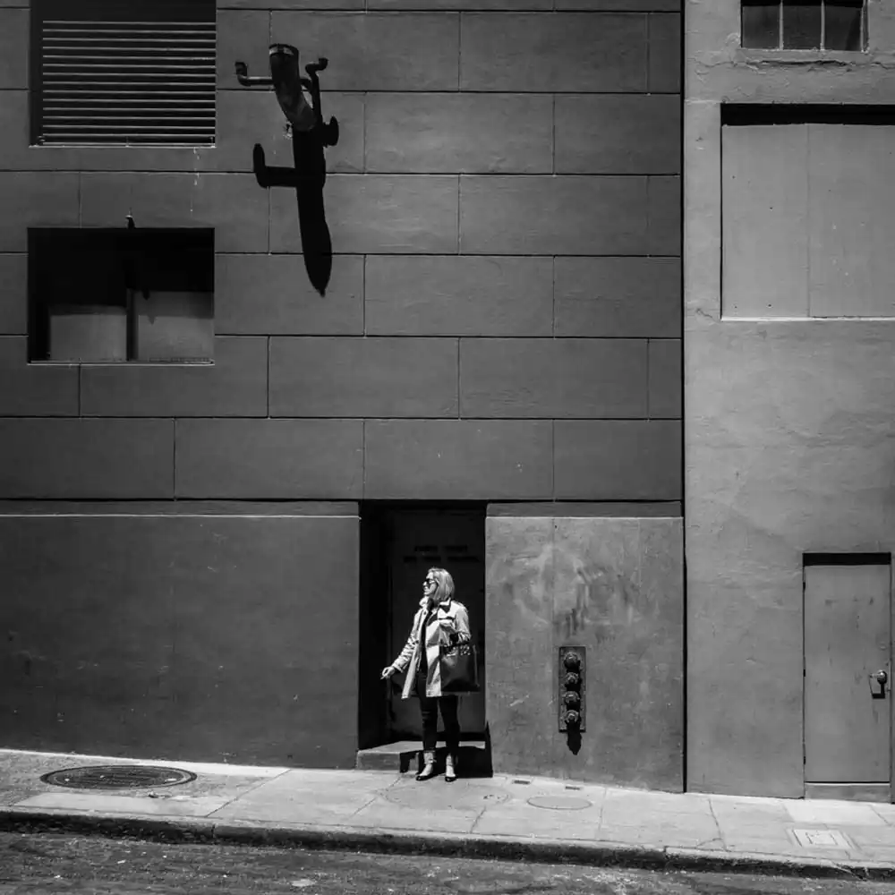 We see how she composes them to create a single frame story.  Her vision for street photography is to integrate architecture with a human element.