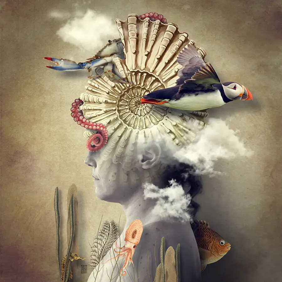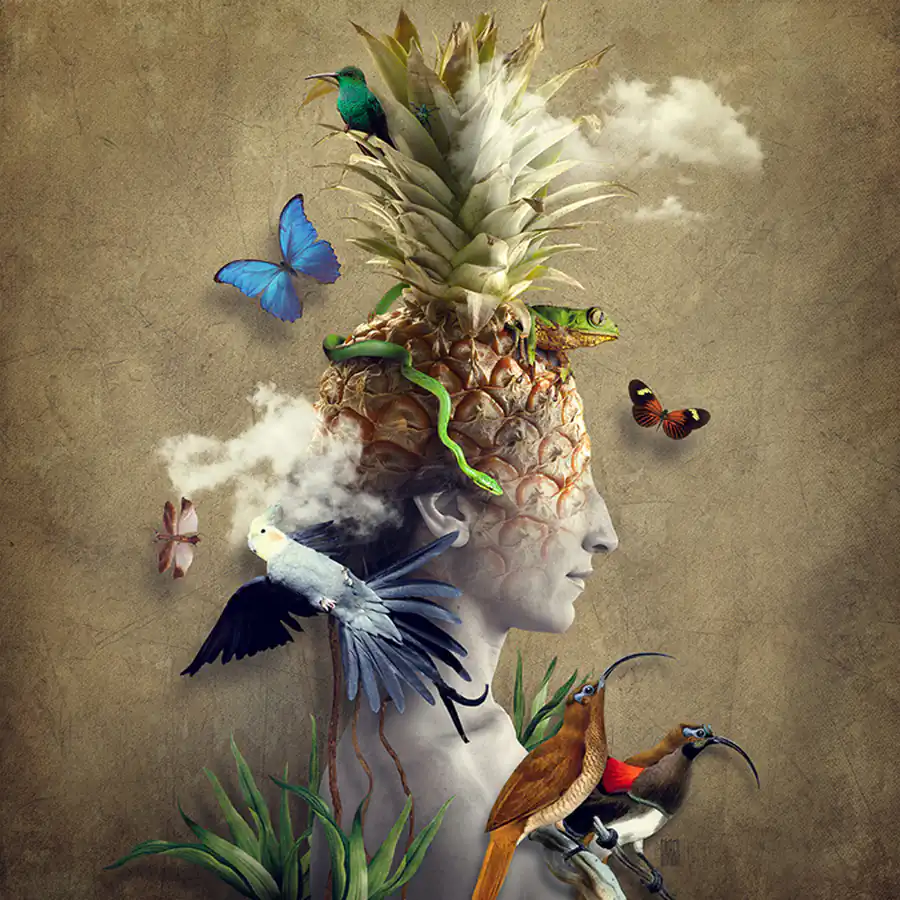 My father was a big Nikon fan and he had a huge lens collection.  He spent hours taking pictures of my brother and me in our childhood. So I grew up with photography and a curiosity for the pictures. All forms of art inspire me, but one of my greatest influences from early in my career is Surrealism. Another source of inspiration for me is the majesty of some architectures: I’m fascinated by what the man has managed to build around him over the centuries. I take pictures of faces and I modify them by adding images, like in a montage. I love  playing with lights and shadows, tones and textures.