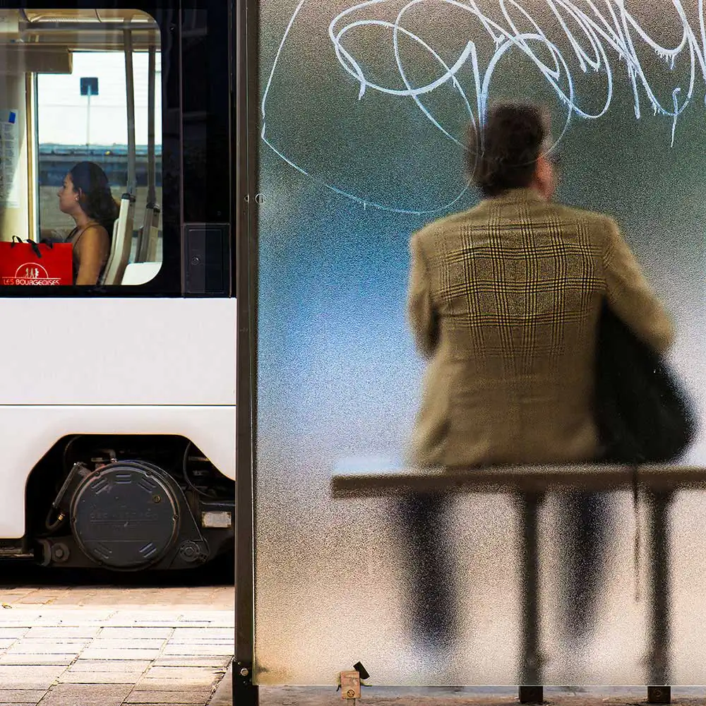 The beings he captures are shadows, their backs turned to a parallel reality. Nothing sinister: they are coloured silhouettes, iridescent with warm tones. Â A resonance, a vibration invests each one of them. Even when solitary, these figures are living, never suffocated or crushed by their isolation. They are like notes playing their own monotonous chant, never a complaint. The photographerâs gaze watches over them. He tenderly reveals the poetry of the moment. He reveals the radiance of the being, not its dullness. There is love and humour in his gaze.Â