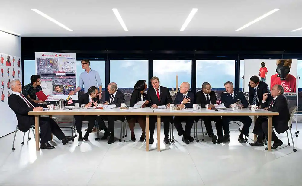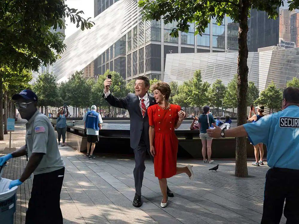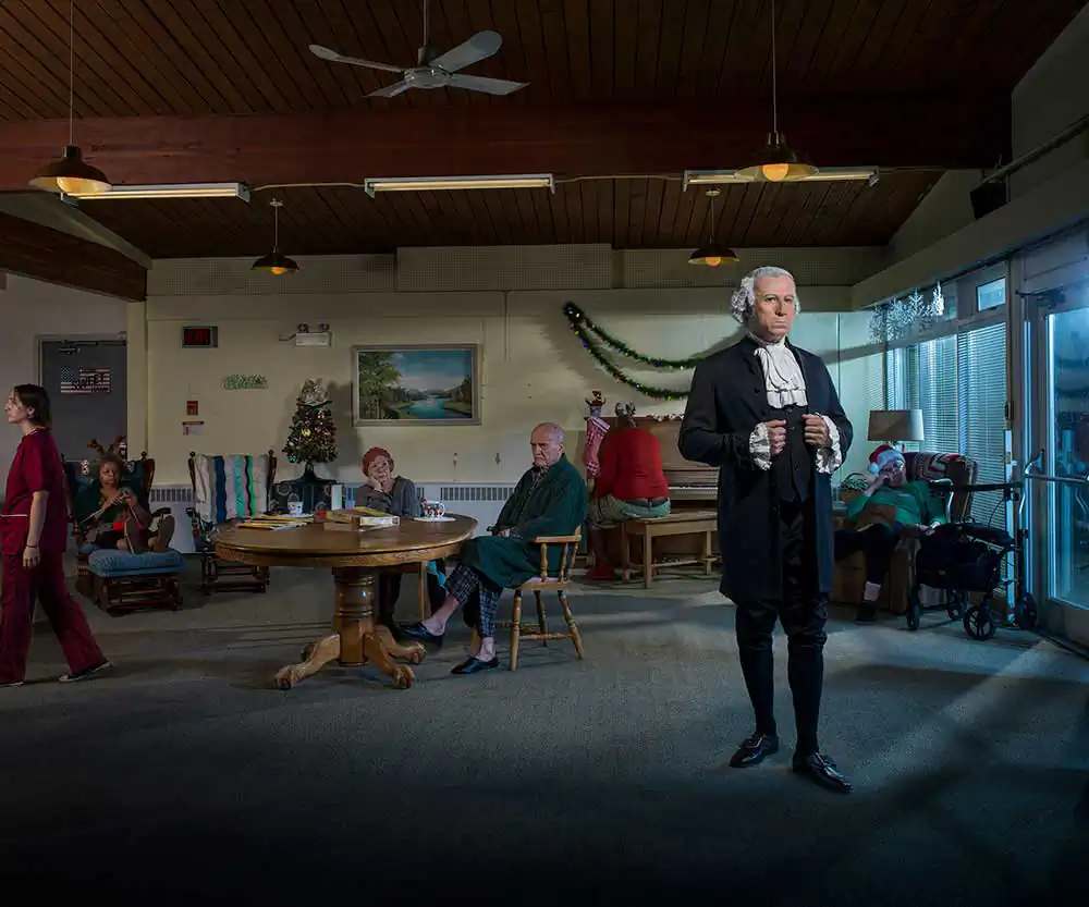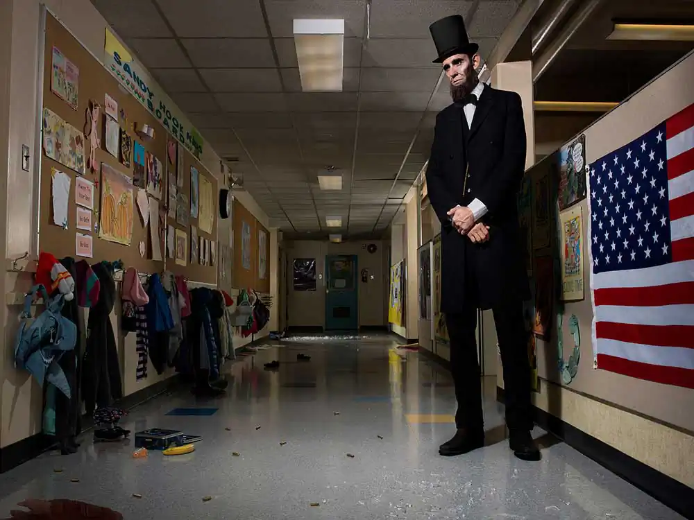 Each tableau features a President portrayed through the prism of their politics, popularity and/or notoriety, further contextualized by a contemporary backdrop, and assigned one of the moral and ethical postulates of the Ten Commandments. These, often humorous, narrative juxtapositions deconstruct the layers of political deceit, exposing latent hypocrisies and challenging the integrity of a system that is supposed to be a model of democracy and social progress. In the context of the series, Lincoln reaffirms the gravitas that lightness and humour in other pieces may inadvertently obscure. [Official Website]