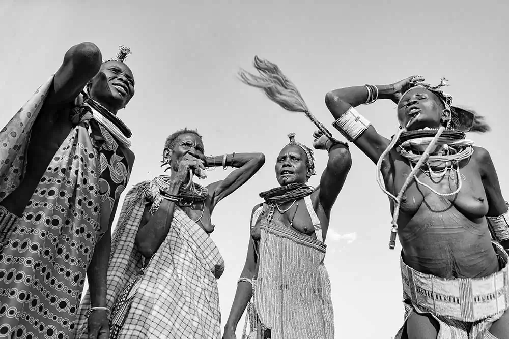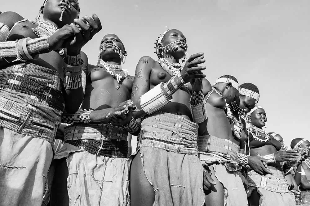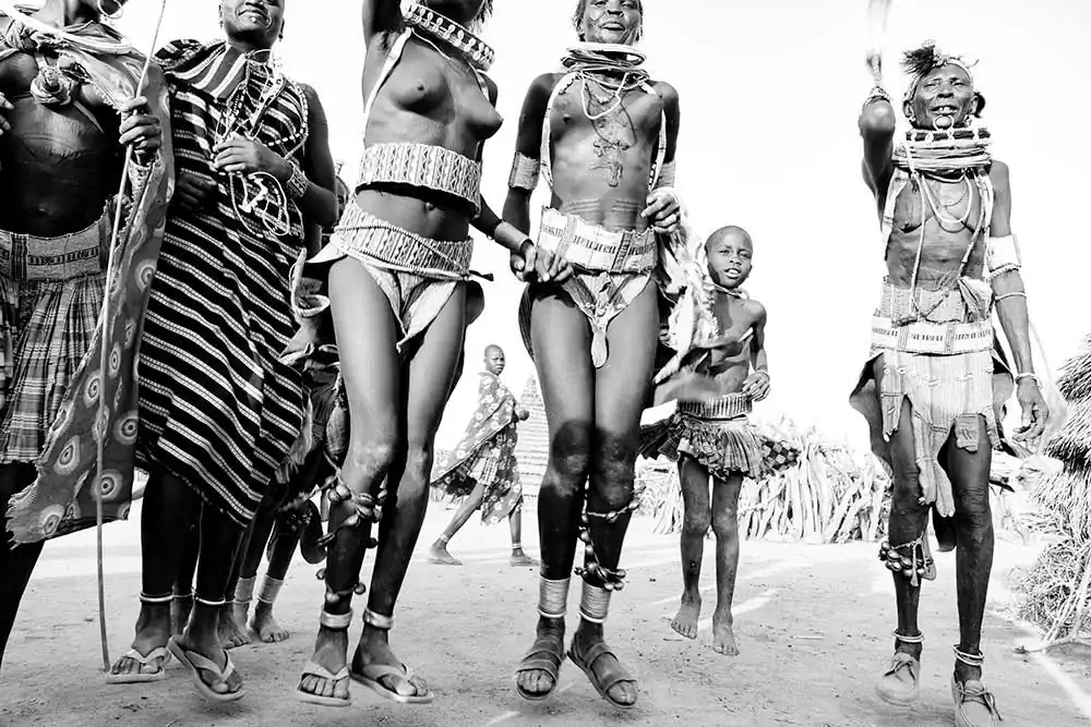 For the past ten years, I have been enjoying and photographing the dances performed by various East African tribes, some of which have been largely isolated from the influences the outside world. Here, I am sharing images of the Nyagatom, the Kara, and the Suri tribes from Ethiopia’s Omo Valley , the Larim and the Toposa tribes from South Sudan, and the Turkana tribe from Northern Kenya. Over the decade that I have been visiting these countries very little has changed in the performances of those dances aside from the occasional addition of some unexpected Western accessories that are slowing creeping into the local attire. And, though I understand that each of these dances is in some ways unique to the performing tribe, I find the rhythms, steps, and energy astonishingly similar from one tribe to the next (at least to my uniformed but appreciative eye), even among tribes that are longtime foes. One more bit of evidence, perhaps, that we are all relatives.