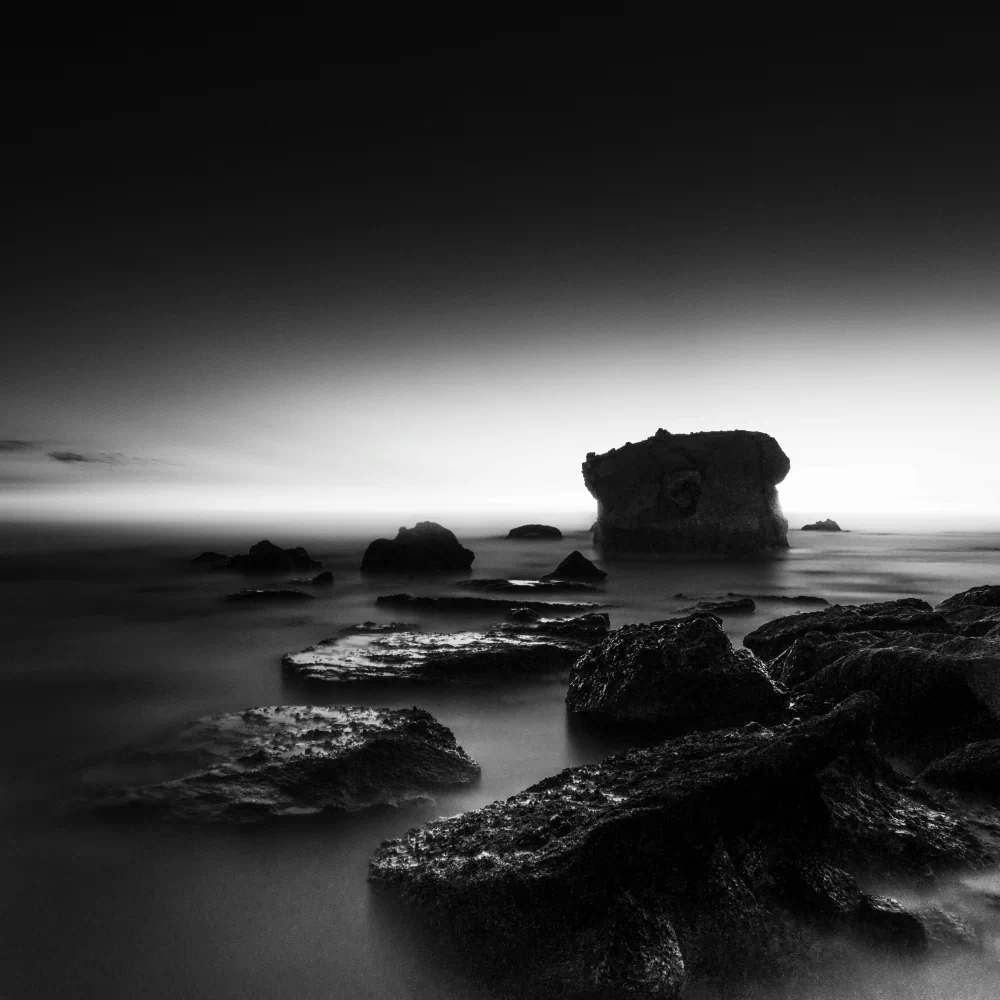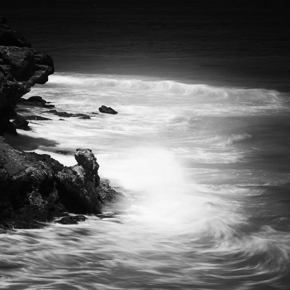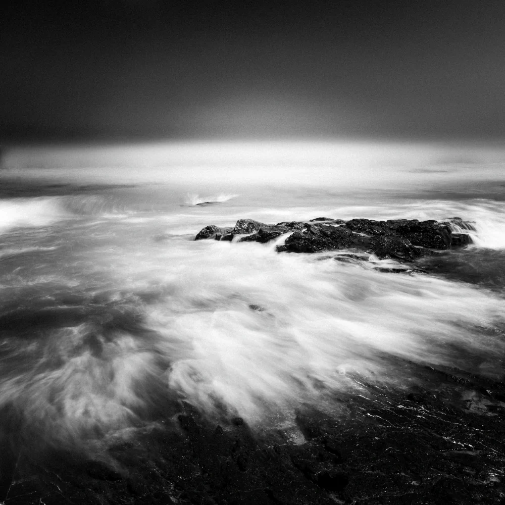 Long exposure plays a central role in shaping the emotional atmosphere of the project. Through extended time, movement is transformed. Waves lose their urgency, water becomes smooth and almost immaterial, and the sea begins to resemble a suspended surface rather than a restless force. This visual stillness is not meant to romanticize the landscape, but to slow down perception. The camera becomes a tool for resisting speed, encouraging a way of seeing that unfolds gradually rather than instantly.