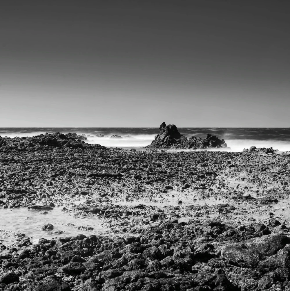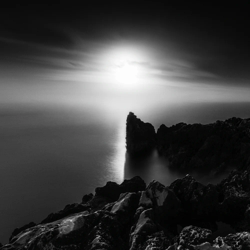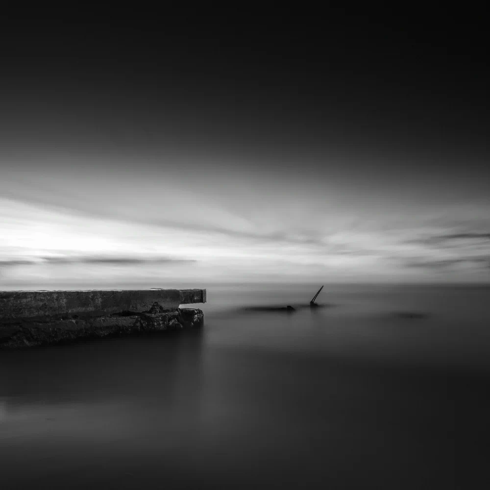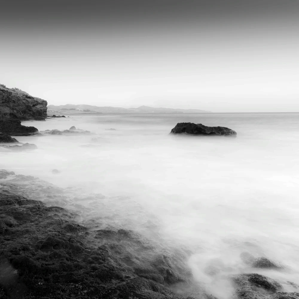 Long exposure plays a central role in shaping the emotional atmosphere of the project. Through extended time, movement is transformed. Waves lose their urgency, water becomes smooth and almost immaterial, and the sea begins to resemble a suspended surface rather than a restless force. This visual stillness is not meant to romanticize the landscape, but to slow down perception. The camera becomes a tool for resisting speed, encouraging a way of seeing that unfolds gradually rather than instantly.