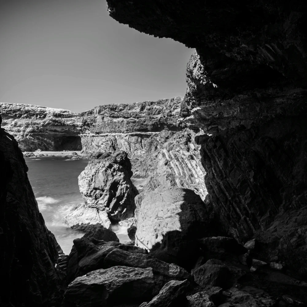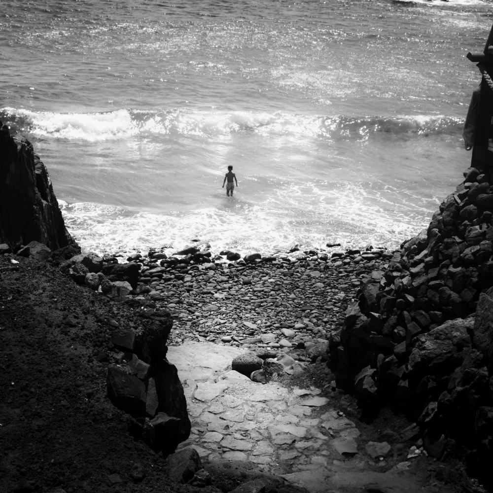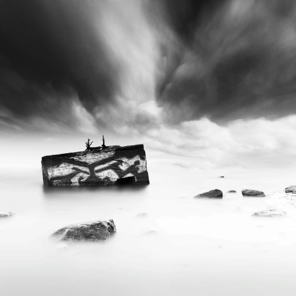 Working in black and white was a conscious decision and a necessary limitation. Color felt too immediate, too expressive, almost persuasive. By removing it, we could strip the image down to its essential elements and allow space for ambiguity. Subtle tonal transitions, shifts between light and darkness, and the texture of water and stone became the primary language of the series. The resulting images are quieter, but they ask more from the viewer—they require attention, patience, and a willingness to remain with uncertainty.