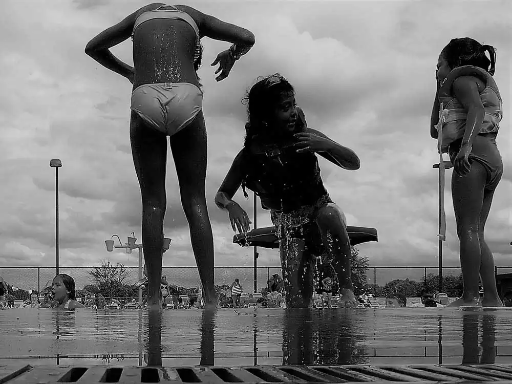 The irony of urban existence is rather exquisite, in contemporary photographic context. Urban spas, Turkish baths, or swimming pools offer a plethora of such open private bubbles. People are oblivious of each other in their semi-nudity, covered only in tiny strips of fabric over their private parts, completely invested in their privacy. And yet, there was this tension in movement, a mysterious furtive energy that I felt in their movement – an urgency to derive more joy than others: a competition for resources was the thing, the best corners in the pool, the best vending machines, and spots in the shade to leave their effects and to steal looks at their quarry, without letting the quarry know.