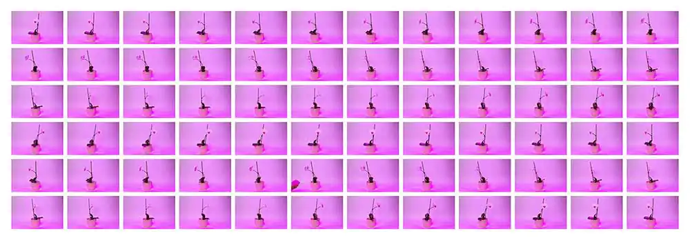The catalyst for the project was found in a residential area of Beijing, where ‘Special Criminal Syndicate Combat’ propaganda posters displayed, on average, every 40 meters. These are presented alongside large-format portraits of so-called young pioneers emulating Mao Zedong’s portrait in Tiananmen Square. A white orchid blooming under artificial grow lights, a still from a video work, is listening to socialist propaganda from CCTV (China’s official news channel) continuously for 30 days. With this video, Long asks the question, “could this conditioning eventually turn a white orchid red?”. These symbolic references provide a framework to examine the power dynamics of state-generated loyalty in China.