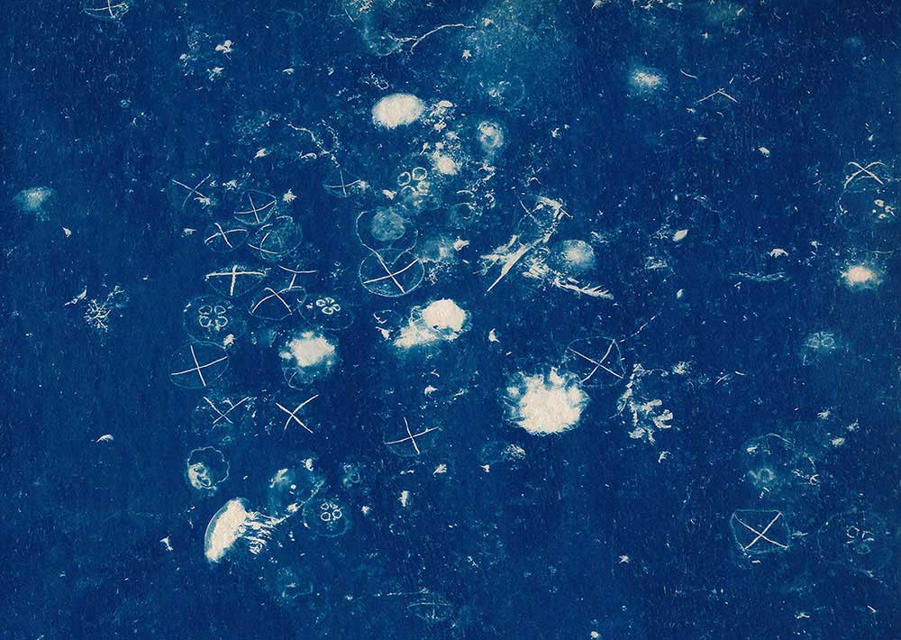 Van der Vaart’s photography seems to articulate an inner conflict between a passion for science and a suppressed feeling for spirituality. This duality has trickled down into her work. Throughout her oeuvre, van der Vaart developed form and method to keep up with the requirements of her themes. Science, time, cosmos and spirituality have been translated in star-spangled nudes, esoteric black and white landscapes, and timeless caves. She has a fascination for analogue techniques such as silver gelatine prints, cyanotype, silkscreen printing and photopolymer etching. In these techniques the focus is on the process and with them, she wants to bring the photograph back to the physical and material world. [Official Website]