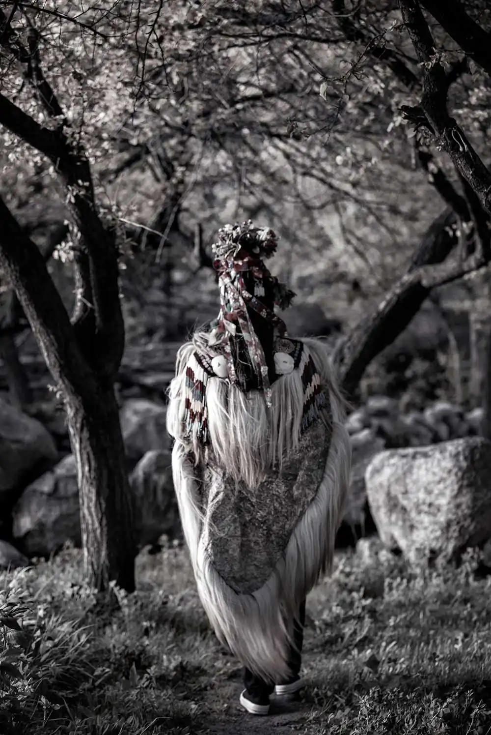 The women wear elaborate floral head-dresses that include rows of coins stitched together for ornamentation, with some dating as far as the 1890s, bright ribbons, metal trinkets and peacock feather while men too sport a flower or a woven crown.