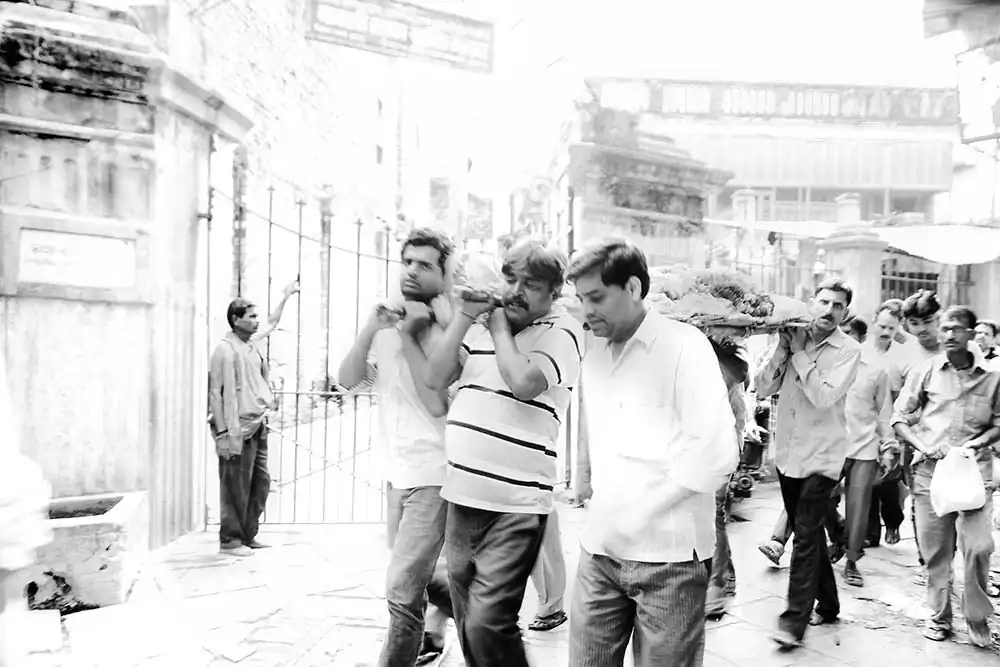 A two storied building named “Mukti Bhavan”, at the middle of the city, established on 1958, is dedicated as the sacred temporary home to them who are praying for Moksha or Salvation. Interestingly in this building, life and death both exists mutually. The family members of the Mr. Bhairav Nath Shukla, caretaker of the building, are spending their life at one part of the building, whereas some rooms on the ground floor are dedicated to those persons who are wishing their salvation and supposed to be near of last moment. The family members take the person to Mukti Bhaban and waits for the final departure. One little unknown room with least accessories becomes the few days abode to them – per se the waiting room of a port for final departure to the desired holy destination of beatitude. There is a minimum rent for accommodation or electricity, which have to pay by the family member’s of that person. But there is only one condition, they will be allowed only if they are expected to die within 15 days. So, that those who too yearn salvation get the chance. The holy sounds of the chanting from the morning and evening “Pujas” in this house purifies the ambience everyday which streams an eternal peace to the blinking eyes of those terminal lives. The faith of capitulation to the supremacy with counting the days of last breath; far away from the decade long known smell of home or loving faces, slowly makes the distance closer to the most awaited acme of liberation and finally announces an adieu to the mortal world.