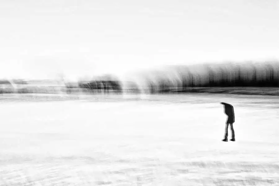 I just wanted to lose myself in order to find myself. I just wanted to forget the pain and the death. Walking alone in this silent and cold nature progressively changed me. I felt alone, sometimes exhausted. But on the other hand I barely felt so peaceful. The beauty, serenity, silence and loneliness around made me feel like the last human being in the world. I experienced a kind of mystic harmony with the woods, the snow and the sky around me. Behind each mountain and wood I was wondering if I could find a new world. Sometimes far away I saw evasive human’s silhouette like souls in the light… I stopped to belong to this collapsing World to reach another World. I was in translation. I realized that I was not traveling just in a landscape but that I was traveling in my own soul in order to find my true identity, my true Nature. In this kind of travel you are alone. The others are just far witnesses and cannot help. In this kind of travel you experience the infinity, fears and darkness of your mind. In this kind of travel you aim to reach the edges of the world. [Official Website]