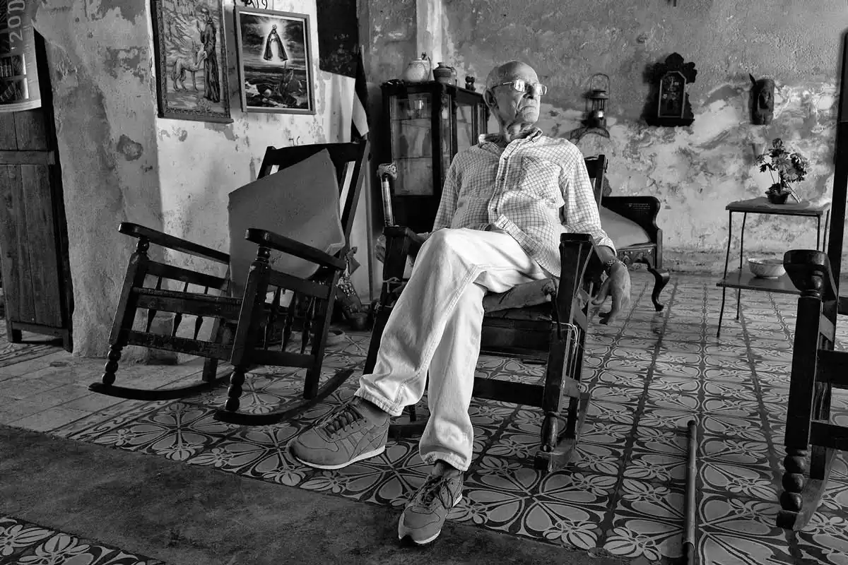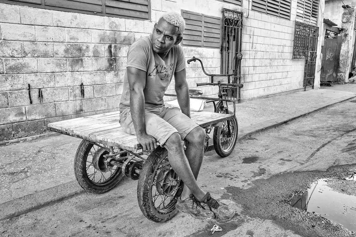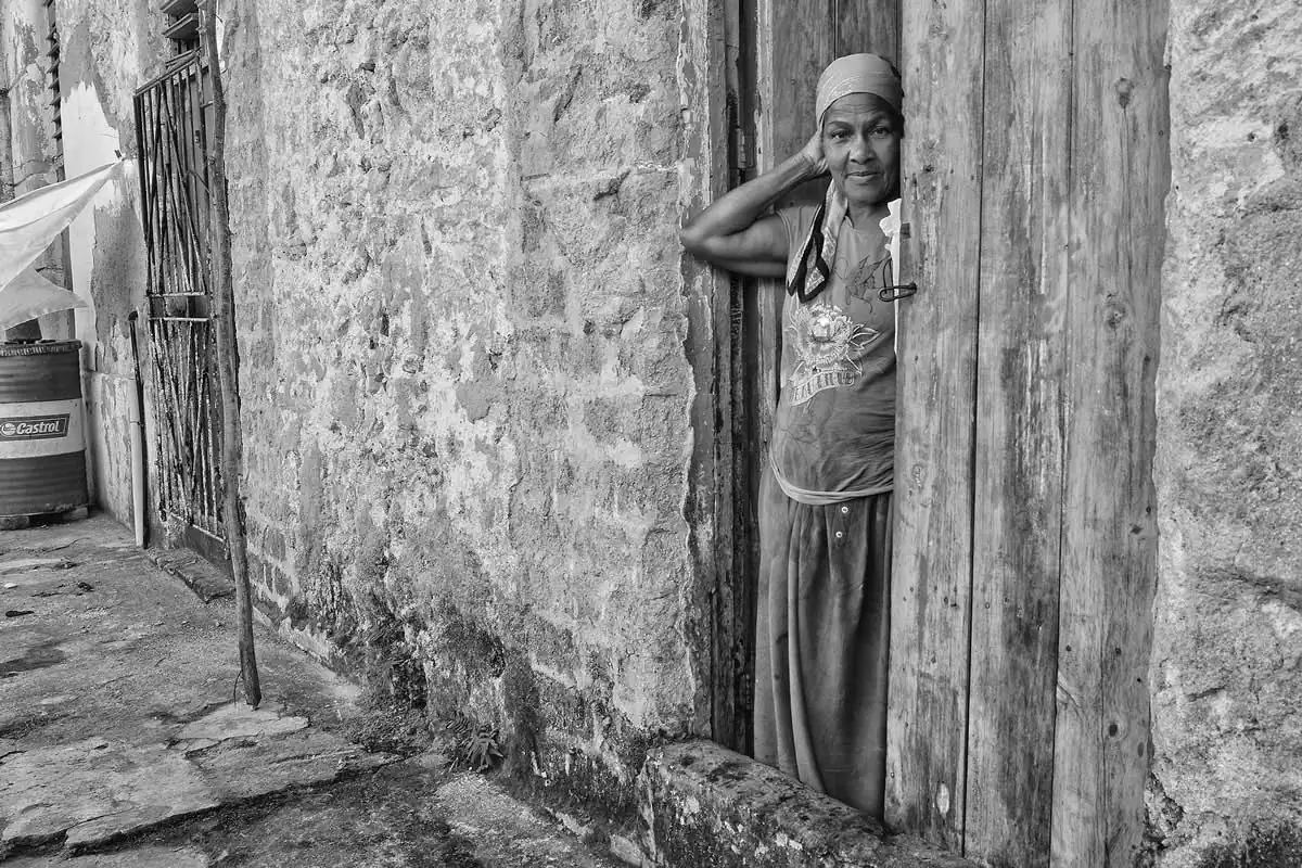 To the visiting eye, Havana is all color – dazzling, saturated, primary color against the rich, water-stained ochres of plaster and stone.  It felt like “killing my babies” to print these street portraits in B&W, but color was ultimately a distraction from the architecture of the image, the powerful beauty of these people, and the homage I found in many of these images to the long legacy of street photography that inspires my own work.