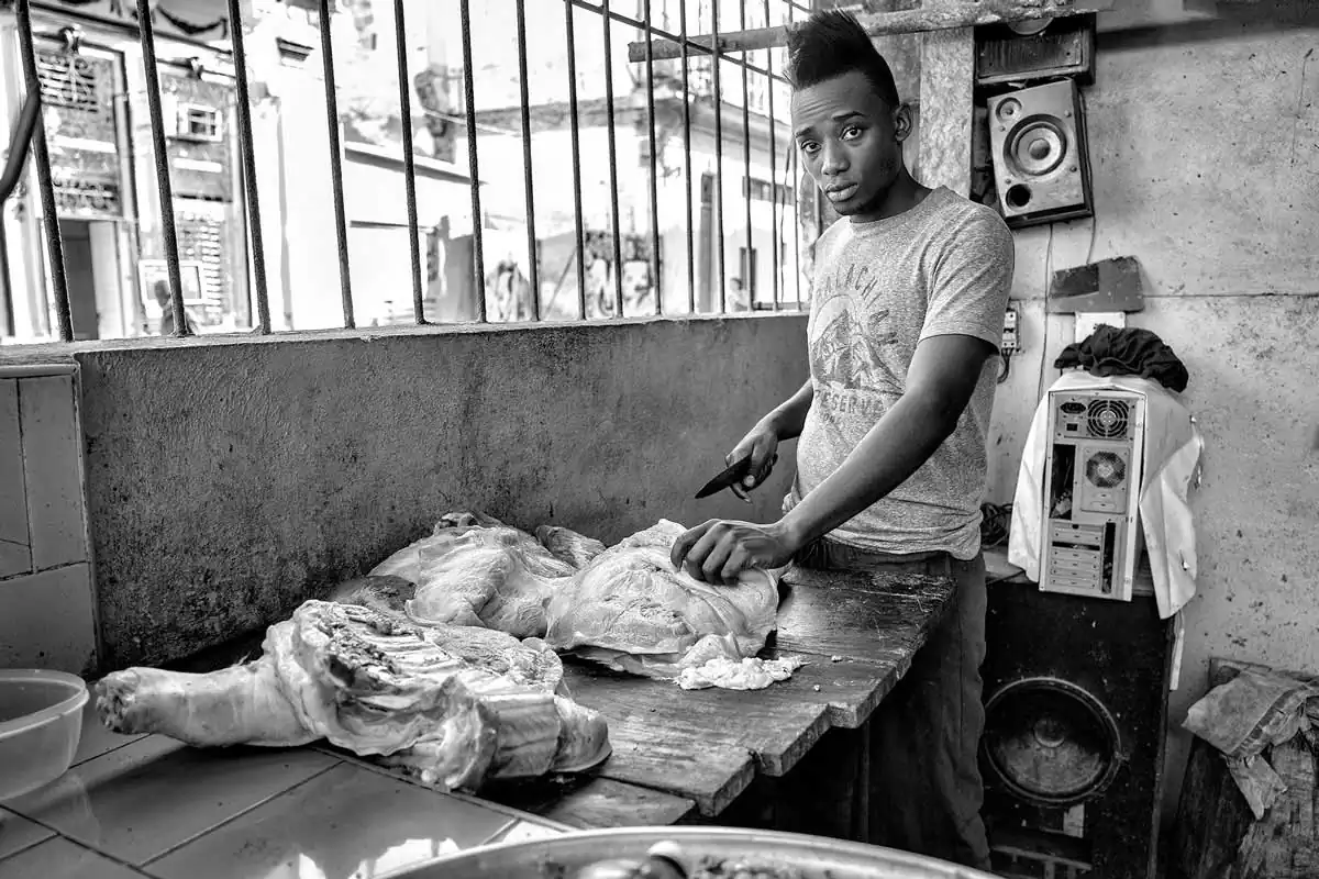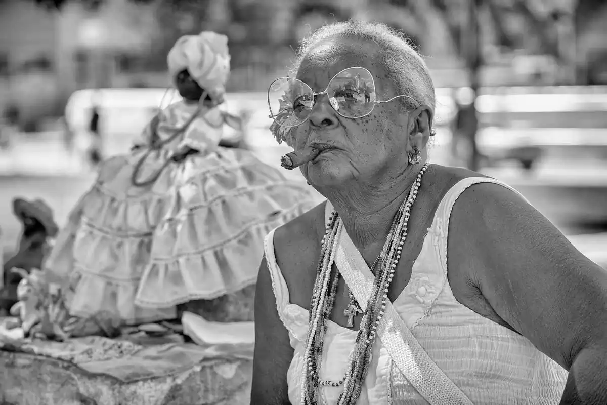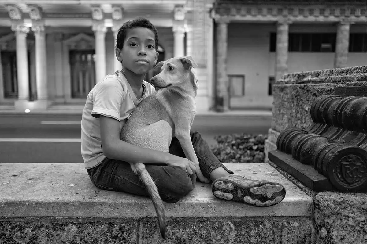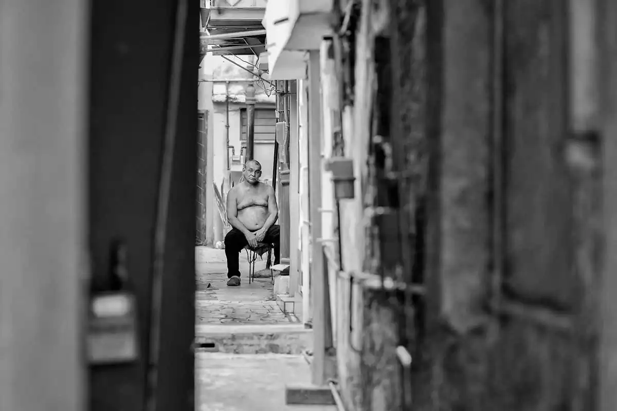 To the visiting eye, Havana is all color – dazzling, saturated, primary color against the rich, water-stained ochres of plaster and stone.  It felt like “killing my babies” to print these street portraits in B&W, but color was ultimately a distraction from the architecture of the image, the powerful beauty of these people, and the homage I found in many of these images to the long legacy of street photography that inspires my own work.
