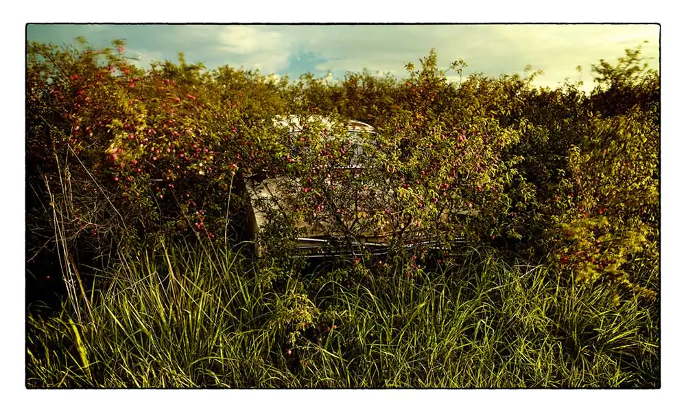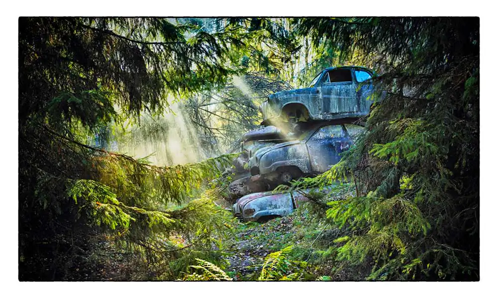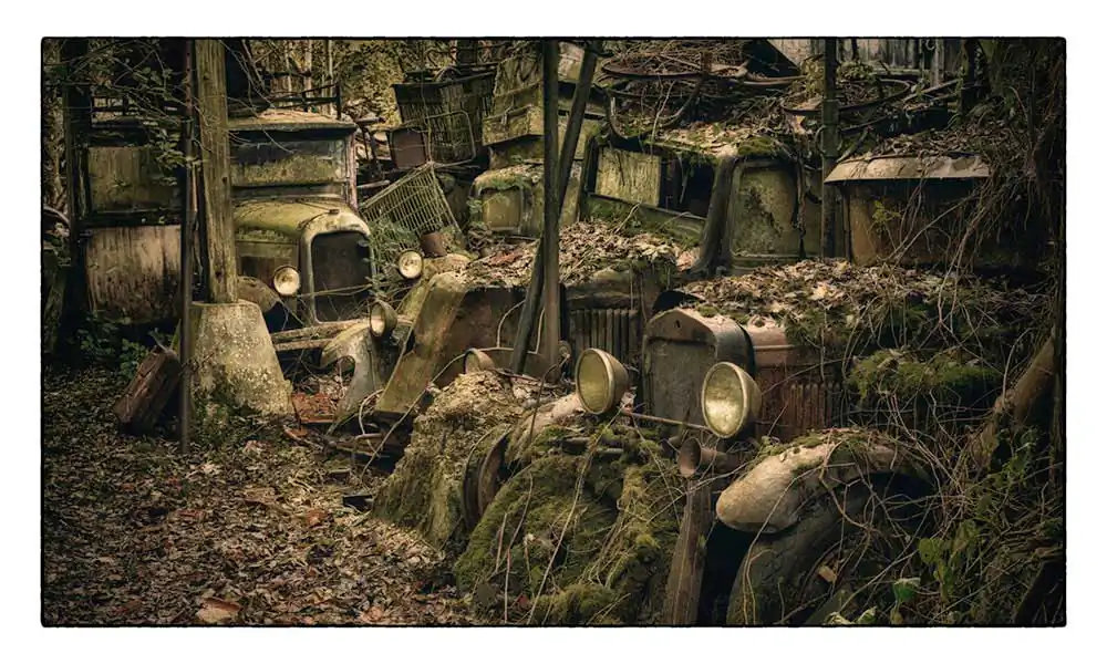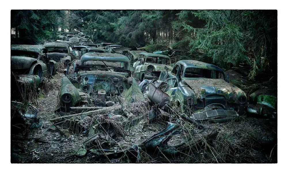 The fairytale-like scenery of an 80-year-old Citroën lying in Sleeping Beauty’s Sleep awakened in him a passion that has found expression to this day in three fascinating volumes of photographs about the beauty of automobile decay. And now these pioneers of mobility stood strangely still and motionless. “A strange mood and strange touch gripped me noticeably. I forgot space and time and took pictures without interruption. One picture came up and the next one was already waiting. Many of these places have already been cleared – lost forever in the invisible. In my pictures I not only let the automobiles live beyond their time, but also show the scenes of sinking into time. I enter a world that is both broken and fragile at the same time. To be able to photograph these little, short eternities is a gift to me. [Official Website]