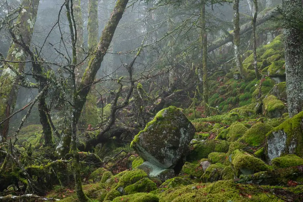There is a magical atmosphere when I enter these forgotten forests. A truly wild paradise where I can pause, breathe the humid and fresh air, admire primeval trees, tree ferns, moss, epiphytes and sometimes epiphytes or hanging lianas. A unique flora and fauna exist in these living museums replete with species extinct elsewhere. Wafts of fog rise between the plants; it drips from the treetops and an elusive wildlife can be heard o seen from different directions. Silent and amazed, I roam discreetly through these places, always attentively looking for an ideal angle for a picture. The type of photography demands all senses and experiences. But the effort is worth it for these extraordinary places.