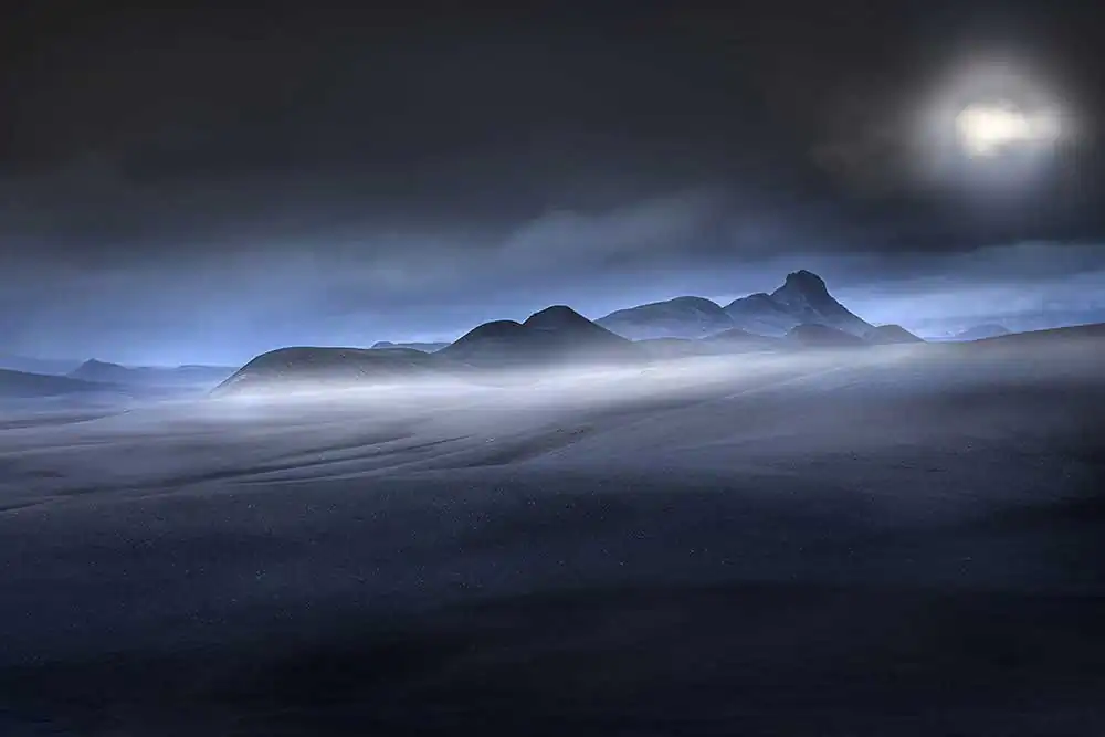 The Blue Desert is a collection of photos that have been taken between 2015 and 2017 in the highlands of Iceland. In this remote and isolated area, a black desert extends over kilometers of cold lava and fine dust.