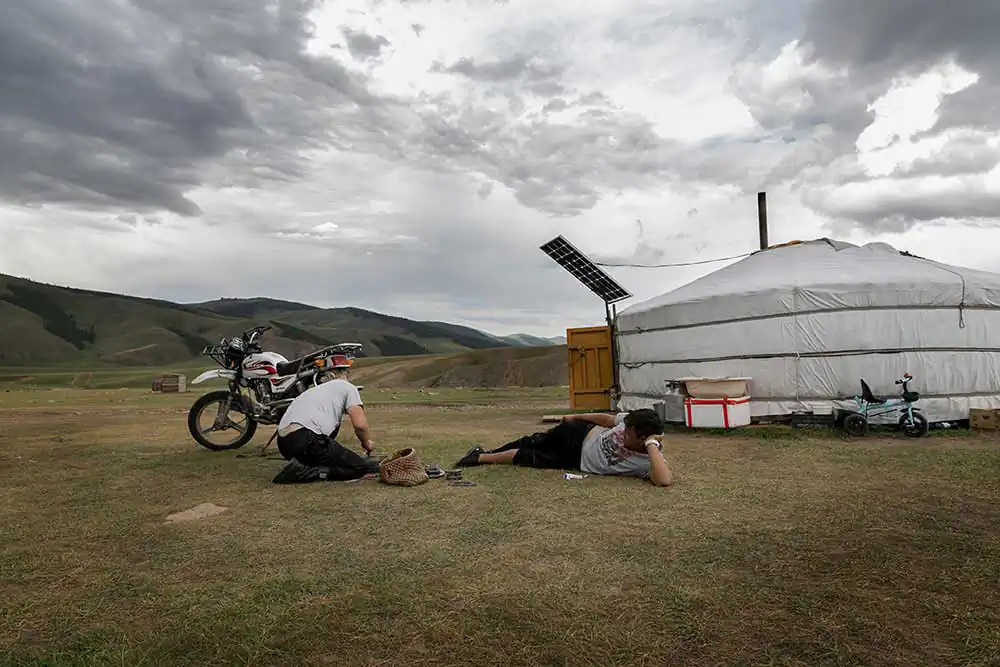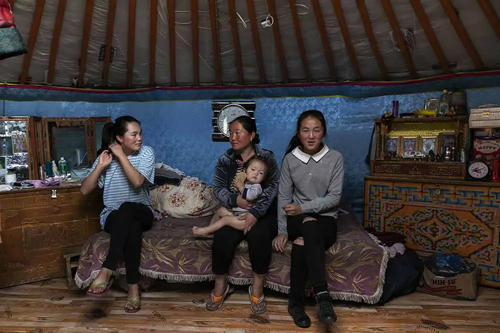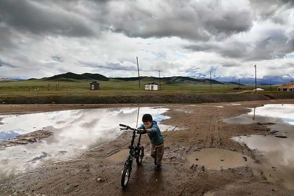 The remainder is divided between small urban centers consisting of a few wooden houses and a few shops, and the nomadic shepherds who live in the endless spaces of the prairies; the latter practice subsistence pastoralism raising horses, sheep, cattle, from which they obtain everything they need: food, milk, clothing. A difficult and suffering reality, always struggling with the harsh climate and the man-made disasters aimed to support the booming mining sector, which degrades the natural environment and its precious water resources.