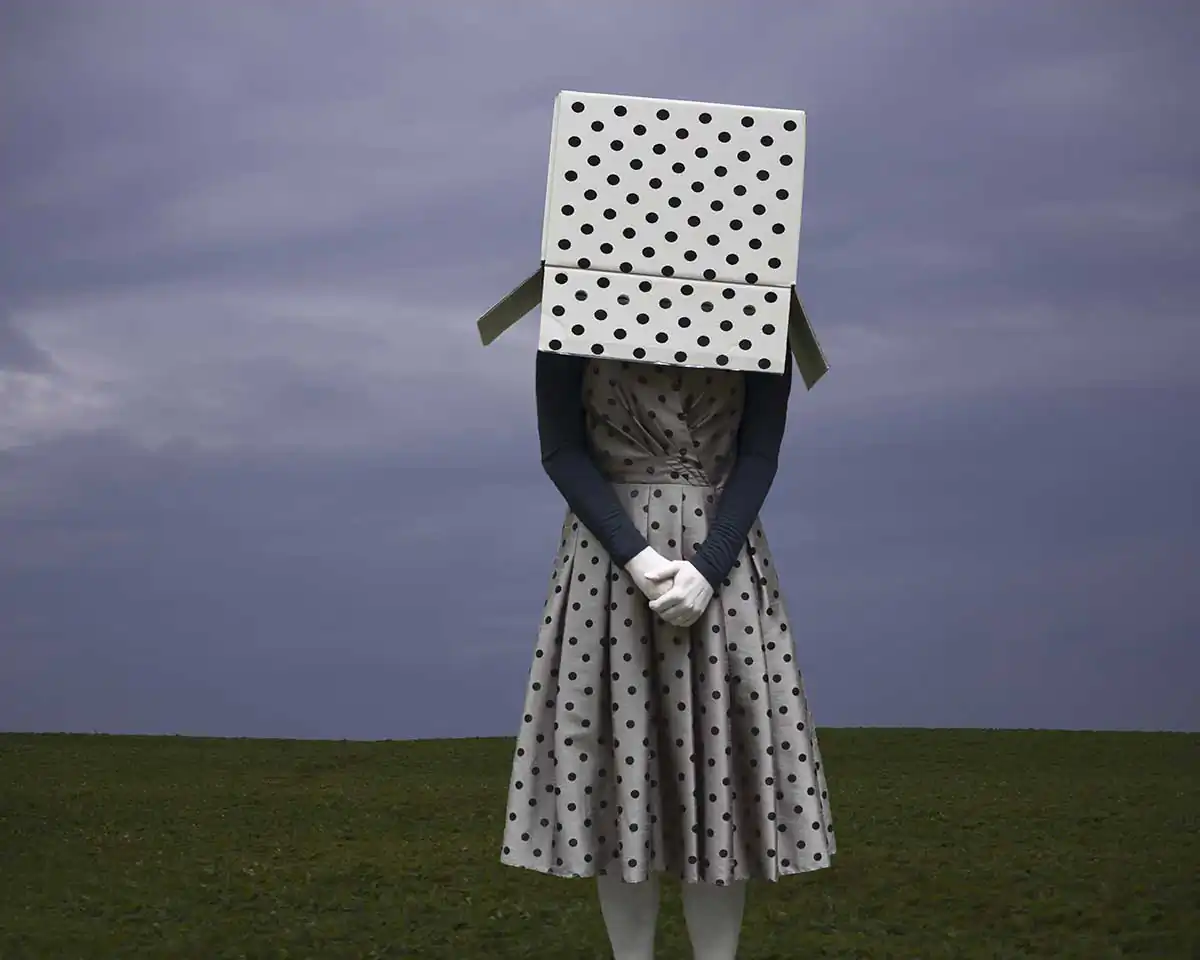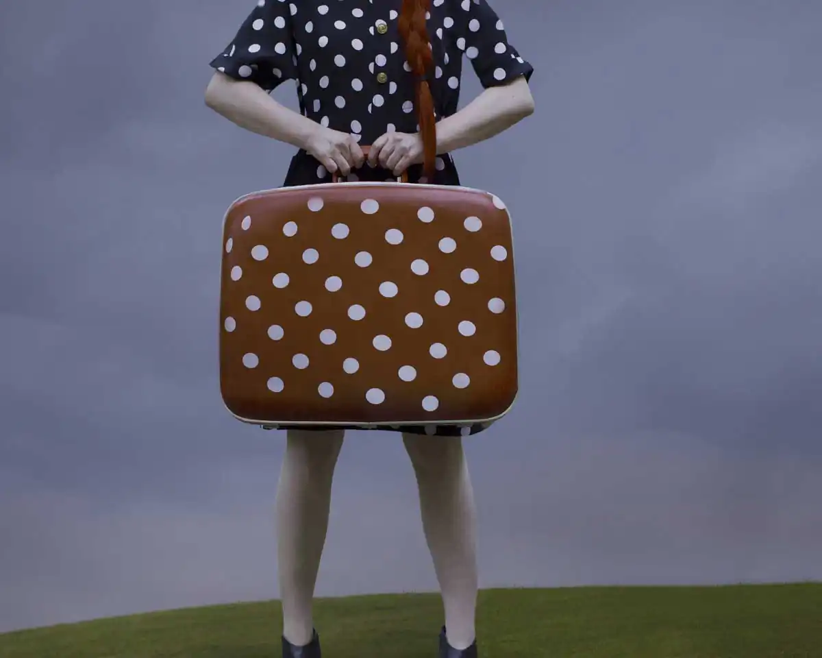 “Far beyond the reaches of the universe,” she says, “infinity is trying to communicate with us” and it reaches out through her work as an infinite series of polka dots. This staged photography series is an exploration of the themes that run throughout Kusama’s work. In this series, female figures are clothed, covered or somehow encased in polka dots. In each photo the identity of the figure is intentionally obscured, blocked or moved out of frame while the motif of polka dots gives indication of the larger forces at play within these micro universes. This series explores the idea that our human identity is both intertwined and intrinsically linked to a cosmological identity and that we, as mere dots in the universe, are a very small part of a much larger entity that exists concurrently within and outside of us.
