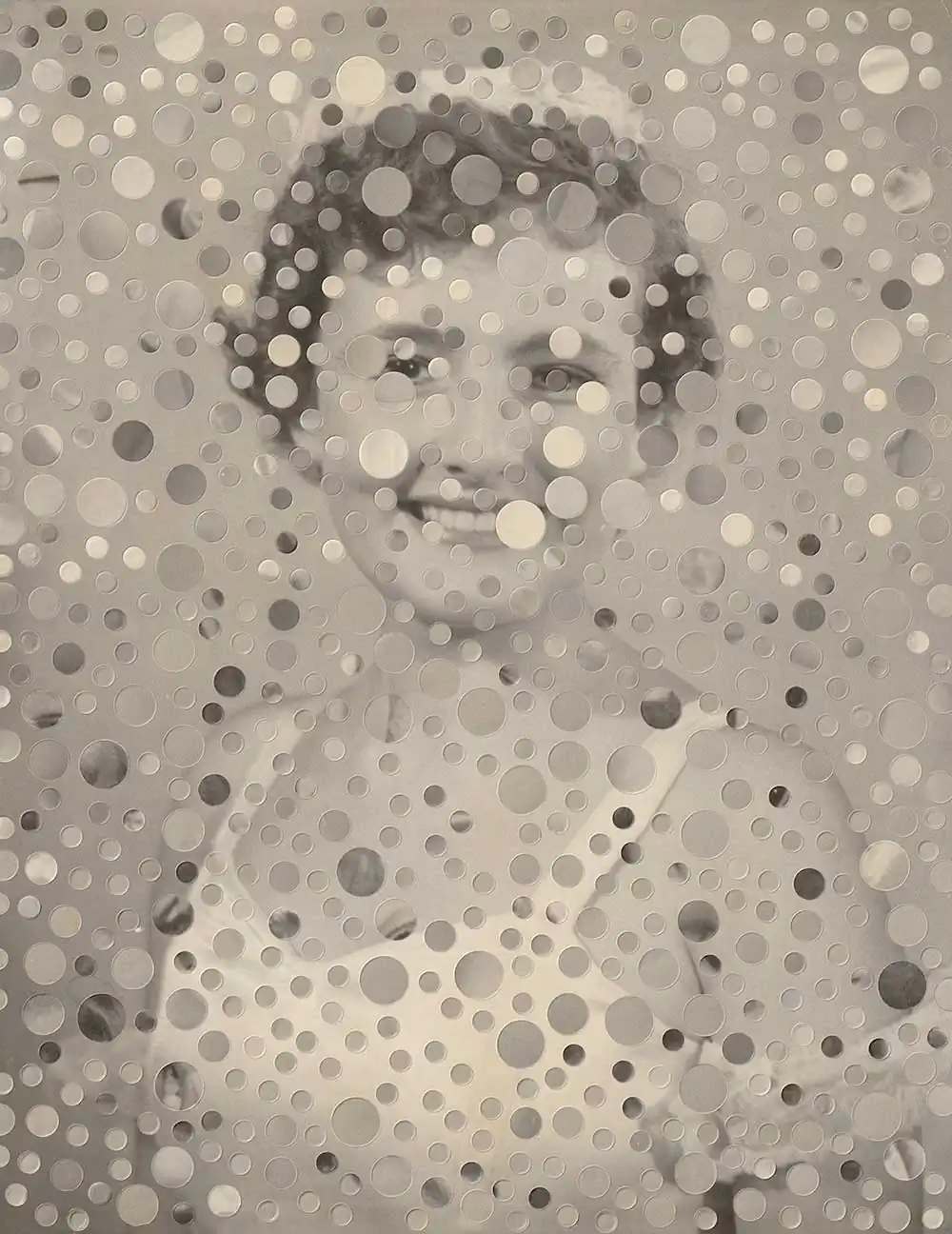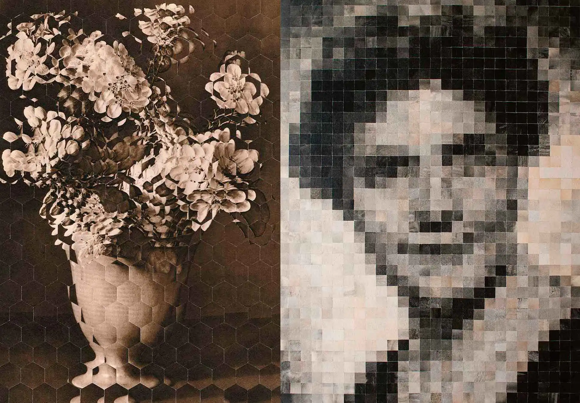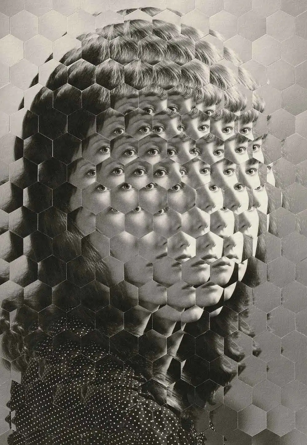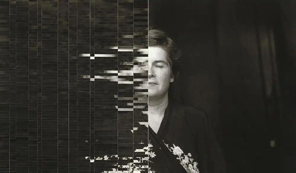 When a found photograph catches Susana’s attention, it is because, on the one hand, she imagines the story that could be behind it, and on the other, the same photo takes her to places; the gesture, the look, make her intuit the character of the person portrayed and this makes Susana decides what type of intervention is the most suitable to highlight those intuitions that the image transmits to her. Not all techniques are adapted to a certain type of image; before deciding what intervention to carry out, Susana works very long at the computer after having done a minimum of research to see if she finds a story behind the photo. Then, Susana scans the photo to then fragment it digitally, trying many alternatives, generating a sketch for each one until she finds the intervention that satisfies her and that exalts what Susana wants to be exalted in the original photograph. The result can be an image in which the sum of the pieces that compose it is exactly the original image but mounted in different places or, in other cases, other photographs or other pieces derived from the reproduction of the original image are added to the pieces of the original image. In the case of the Filia and Sisters series, each piece that constitutes the final image has been digitally modified to give the effect of seeing the model as if behind frosted glass. In all cases, Susana says that she greatly enjoys the process of taking apart and reconstructing and compares it to a dance.