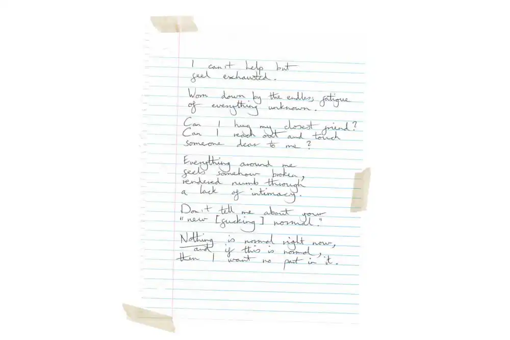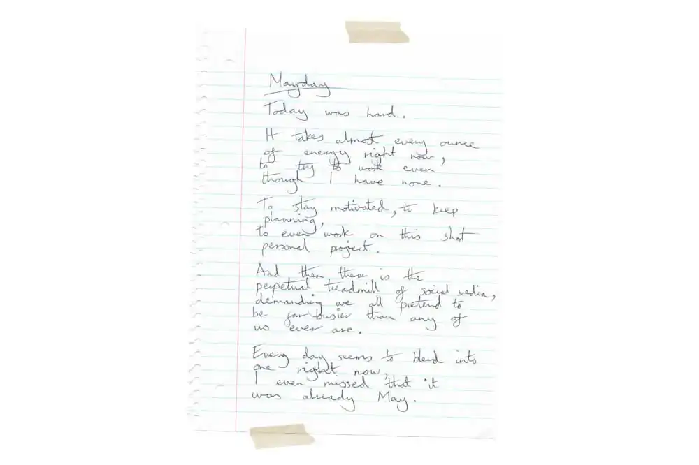 The Isolation Diary is a gentle meditation on mental health and the value of human companionship amid the COVID-19 crisis. The concept of this project is to share a very intimate and personal reflection on the long-term effects of a traumatic societal event such as the recent worldwide pandemic. The final project is presented in the form of a visual scrapbook combining constructed photography, hand-written diary entries, newspaper clippings and headlines as well as pre-recorded spoken word, as if the viewer were reading a very intimate, private journal.