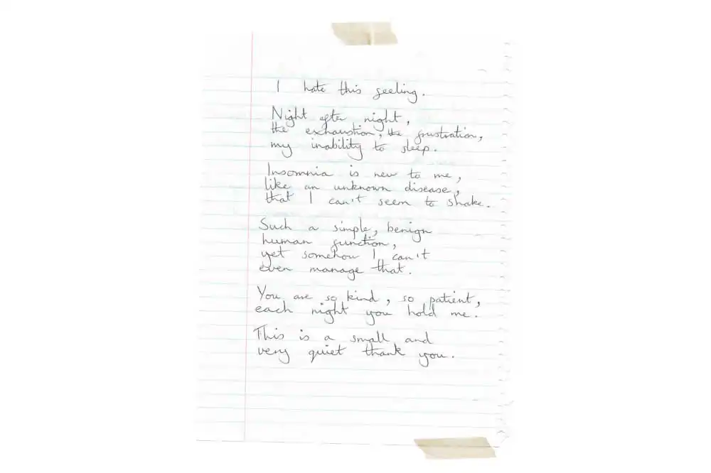I set myself the simple task of writing down each of these complicated feelings as they came, turning my written words into a series of evocative images. The photographs in this ongoing visual diary are memories of private moments, at times when I felt things most acutely, helping to make sense of this challenging and distressing situation.