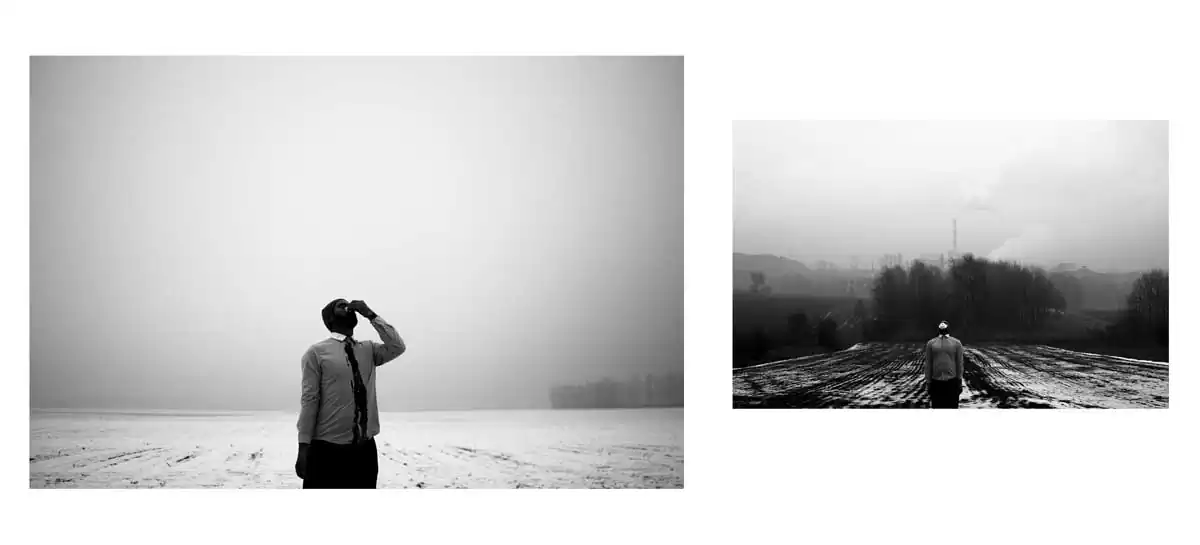 I stood motionless, cool, without feeling or fear. I saw myself in the reflection of water. Is it me?, or maybe already my soul?.I live in a small town in Upper Silesia in Poland. Every day, I watches clouds of smoke coming from a nearby mine. Dense air steeped in smog often does not allow me to breathe normally. I could leave here, see the sea or the mountains every day. Forests, other cities. I could breathe clean air. I could leave here, but somehow I can not. This place is neither nice nor ugly, I do not know if I like or dislike it. But here I was born, this landscape penetrated me. He became a part of me, I will become a part of this land someday.I have worked on “ The land ” project for the last one and a half years. All photos in the project are my self-portraits.I took photographs in vicinity of the town where I was born and live to this day. The project is a record of my emotions to the place where I have my roots.