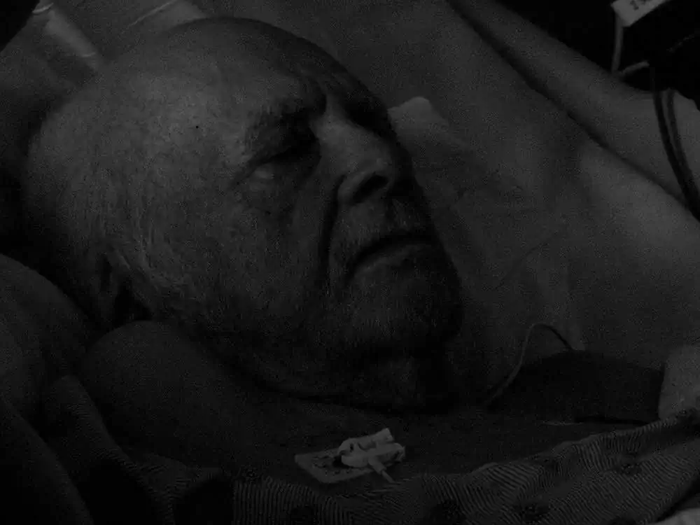 And finally, as an aesthete, critic and a photographer, it becomes incumbent of me, and as an imperative, to tread the same course Shay, our pathfinder, had hacked out of the wilderness of hesitation, vacuous protocols, and mocking societal doctrine of privacy, to shoot away with our cameras, to try and arrest that fleeting beauty for a moment, in our singular, as well as our collective conditions. I photographed Shay, despite warnings and threats from the Hospital Security and their attorneys. He never displayed any resistance by the way of his hands, or his eyes, while I shot his final condition. Instead, he looked at me directly, in encouragement, as if saying, “Carry on… now it’s my turn to yield.” My photographs of him, in that final state, were the celebration of our maestro, his spirit, his gumption and his humanity – it was a tribute.