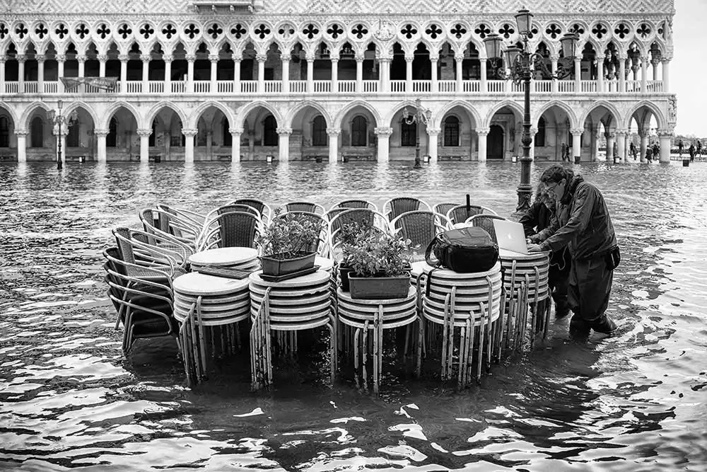 I traveled to Venice on two distinct trips, on 17-18 November 2019, following the record tide registered on 12 November, and again on 22 December 2019 to photograph the everyday of the Venetian life during high tide. The gallery “the last tide” contains the snapshots of those intense two and a half days.