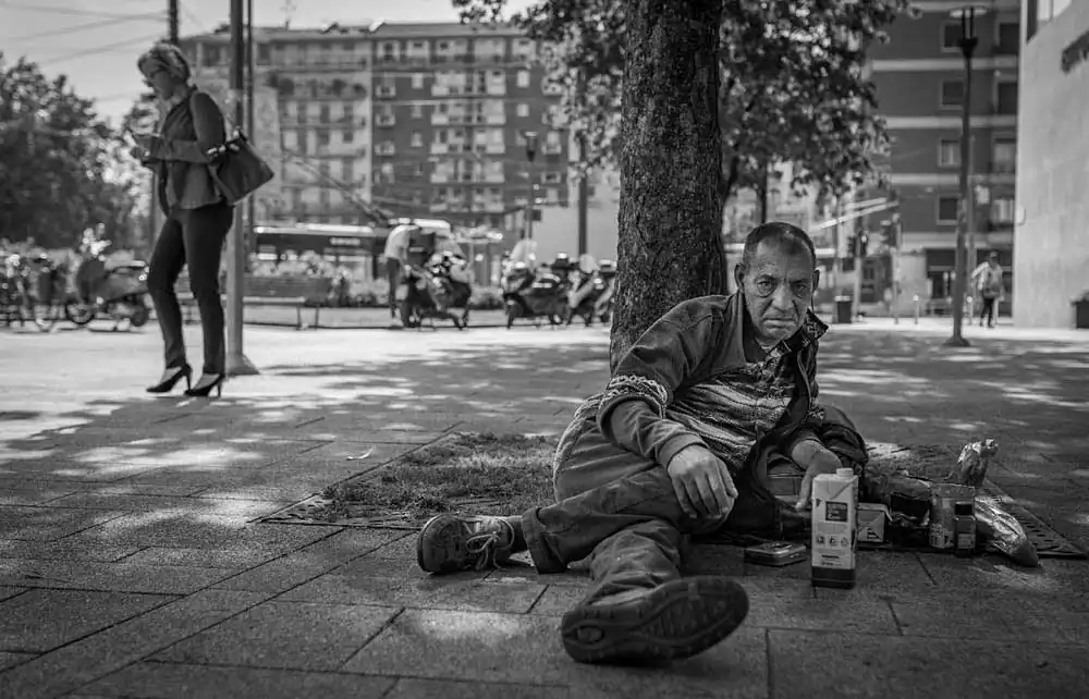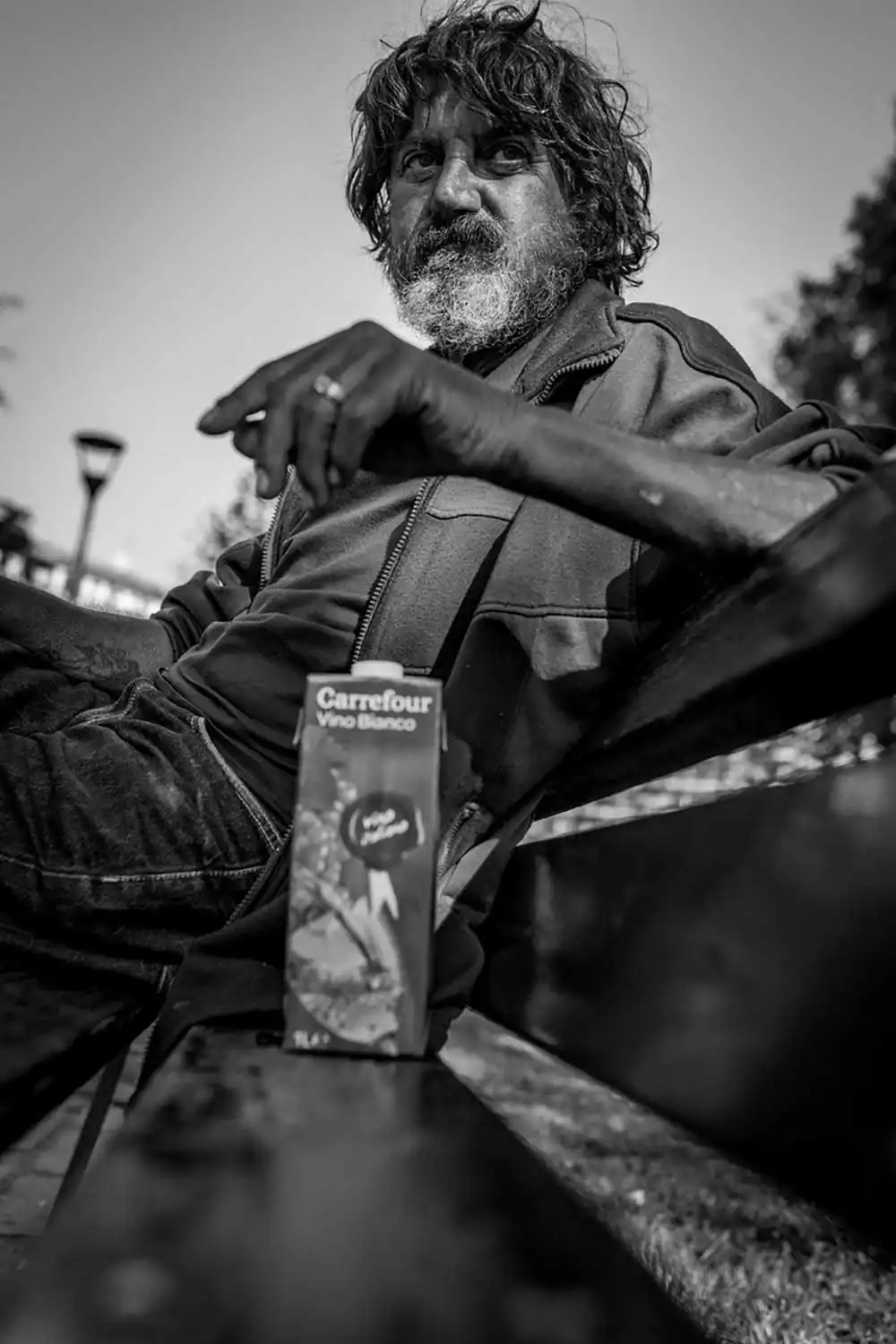 The pictures represent the life of Fabrizio, who has been living on the street for over 15 years, fighting everyday, with cold and hot weather, with a strong alcohol dependency. Even though Fabrizio has some problems, he is beloved by the surrounding community, they help him with what they can and everybody seems to love him. Fabrizio had a tough divorce, he lost his job and was forced to live on the streets.