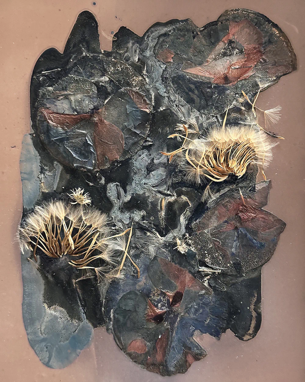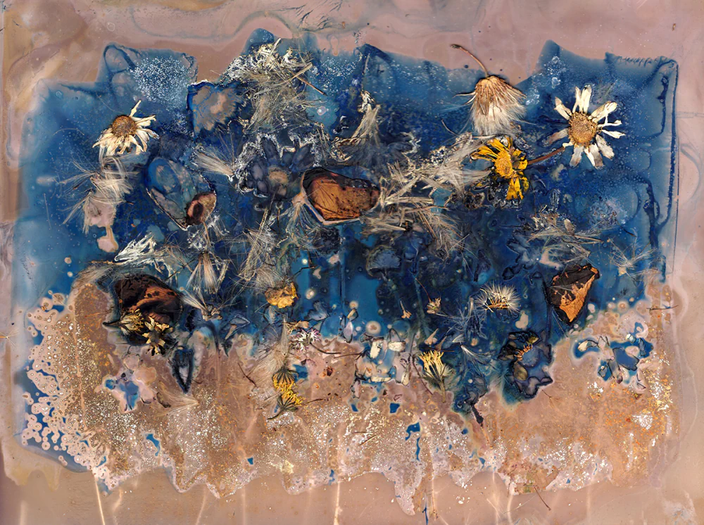 Using expired darkroom photographic paper and eco-friendly cyanotype chemistry, the works are created through exposure to the conditions of specific environments. The images are therefore less captured than grown. They emerge through processes of staining, bleaching, erosion, crystallization, and fading as the materials react to the surrounding landscape. Water chemistry, salinity, weather, and plant residues leave direct marks on the surface, turning the photograph into a physical record of environmental conditions.