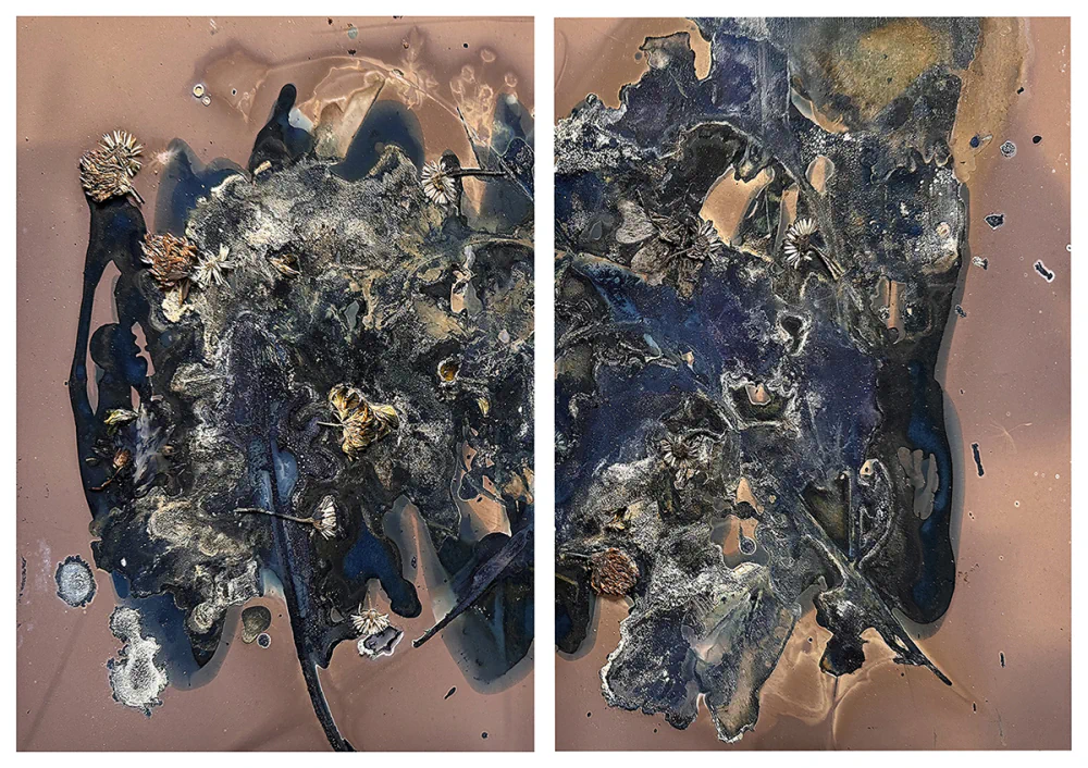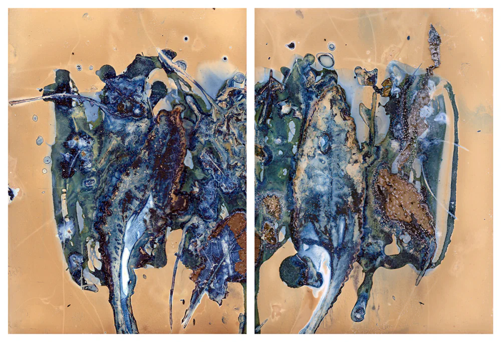 Aindreas Scholz is a German-Irish photographer based in London whose practice focuses on cameraless and ecological photographic processes. His work collaborates directly with environmental elements such as sunlight, water chemistry, and plant matter, allowing rain, seawater, salinity, and disturbed soils to imprint themselves onto photographic materials. Through these methods, his images occupy a space between aesthetic object and physical evidence, functioning as material traces of contamination, place, and environmental vulnerability.