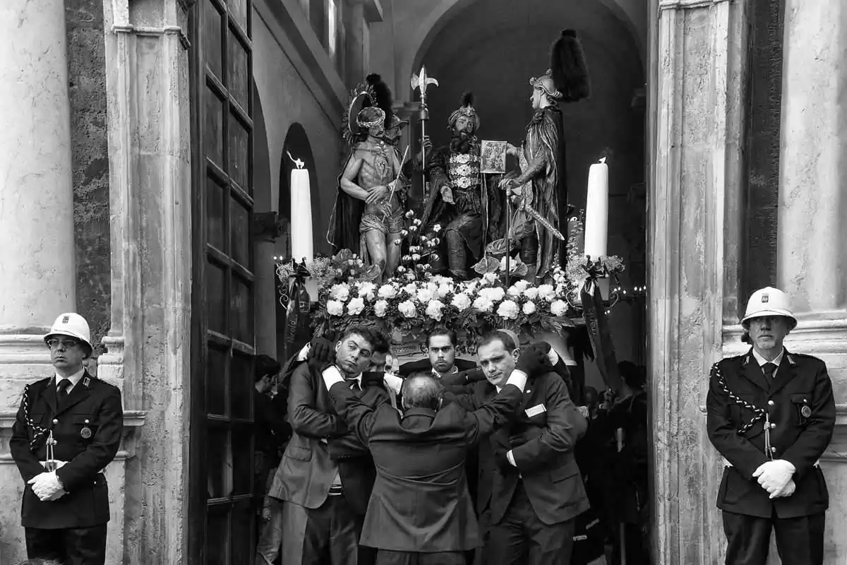 Trapani back to the rituals of ancient spirituality, after 400 years still deeply alive. They are days when I mingle faith, tradition, folklore, the sacred and the profane. Moments of aggregation in which the city is found throughout. Hours when the streets fill with people; a large crowd gathered together for supervising and guiding the “Procession of ‘Sorrows”, the “Procession of the Madonna of the people” and finally the long “Procession of the Mysteries”, where during latter’ the farmers and the ancient craftsmen carrying on their behind the precious wooden sculptures accompanied by musical bands. In these times of religious participation, it is reflected throughout the economic, cultural, social and politics of the city.