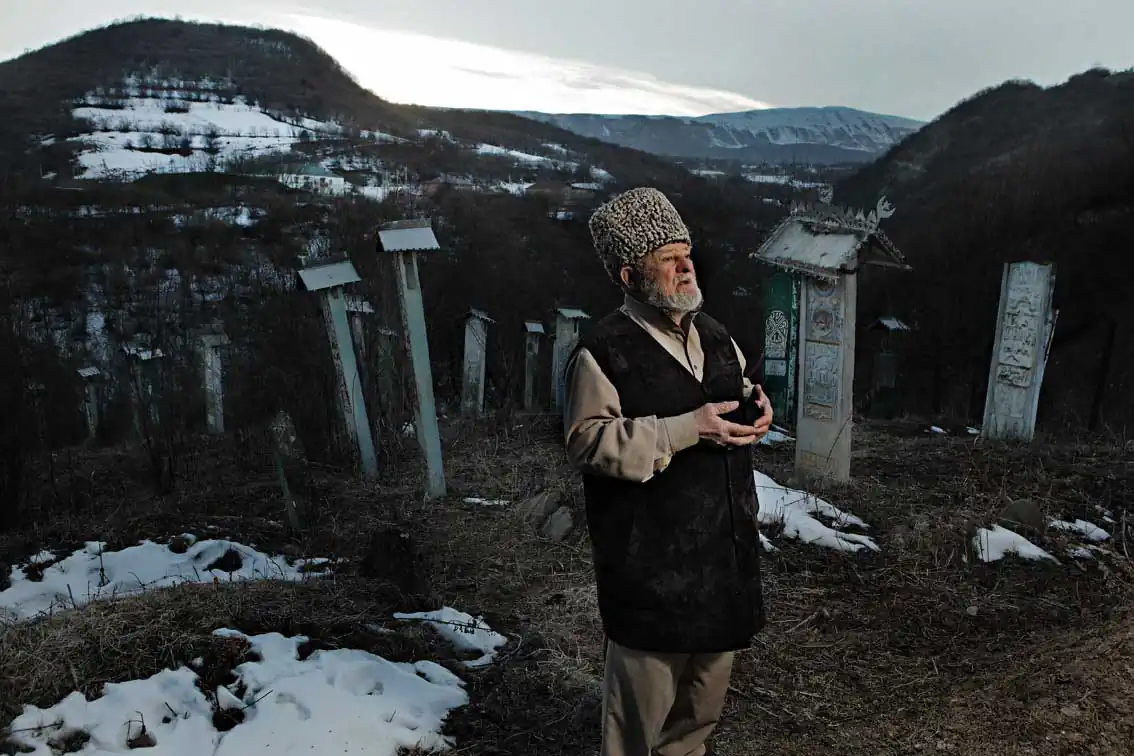 The project proved difficult. Without any sponsorship, I was trying to cobble together money while working on the portraits on my own. I traveled all across the Caucasus — Chechnya, Dagestan, Ingushetia, North Ossetia — until finally I managed to get a big break. Through Svetlana Gannushkina, a well-known Russian migrant rights activist, I made contact with Yunusbek Yukurov, the head of the republic, who recognized the historical importance of the project and agreed to provide sponsorship.
