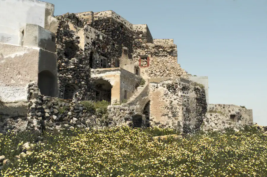 The hotel is located in the southern part of the island, in the scenic village of Megalochori, next to a wonderful large area of vineyards. The name comes from its history and connection to the surrounding nature, as in Santorinian idiom ventema (βεντέμα) means harvest.