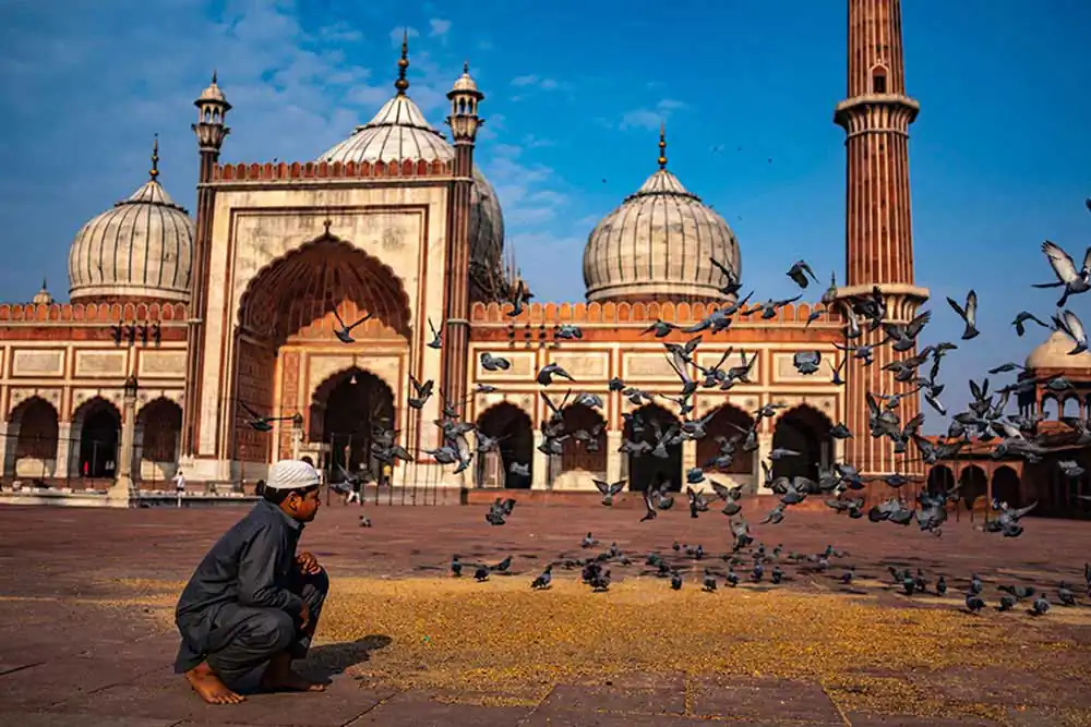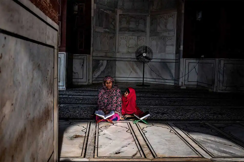 Thanking the Lord for his blessings, people come in large numbers at the Jama Masjid in Delhi and end their day by offering prayers together. When looked at through a panoramic view, the Masjid looks resplendent with pastel colours rising and falling in rows together with people performing the sajda during Namaz. It is almost like a celebration of one’s existence with strangers whose beliefs fuse into yours and in no time, the Masjid becomes one. It floats through the ambience of collective offering like a chaadar, whose threads connect from one person to the other, being offered to the Almighty to thank him for all the blessings that he has bestowed on the world. [Text by Vrinda Vaid]