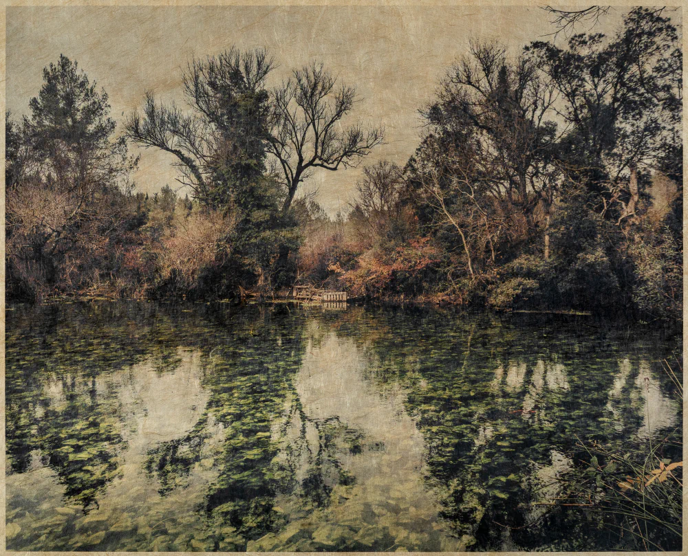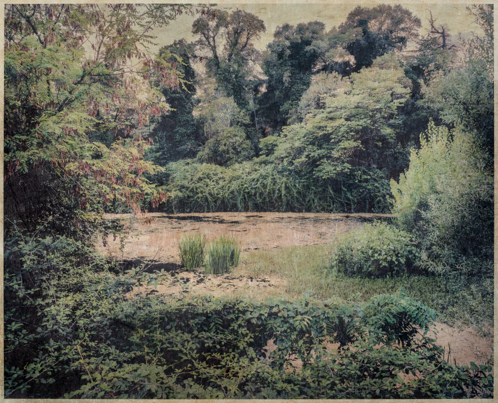 Refuge was eventually found along the green banks of one of the smallest rivers in France, the Lez, which is barely thirty kilometers long. The decision was made to focus on this waterway, from source to mouth. Along the way, both wild and managed, bucolic and at times implausible natural spaces were discovered, leading to the creation of this series of images, conceived to remain entirely green.