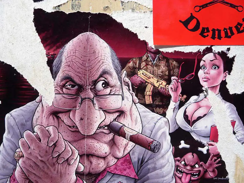 Accidental juxtaposition – a dagger between the Pope and the women in a very narrow street with a Catholic church