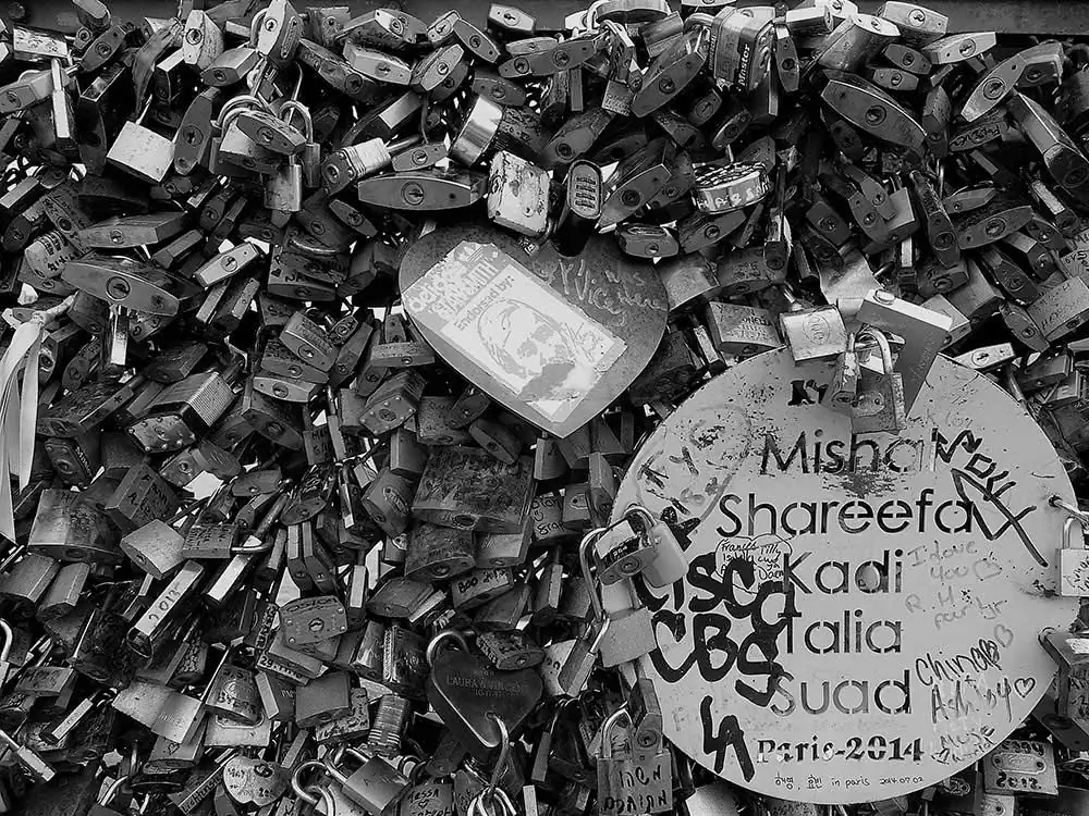 Locked in love – padlocks on bridges across the Seine symbolize forever in love