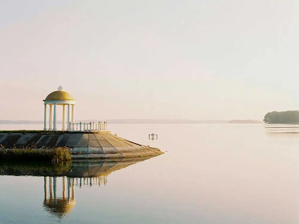 The reservoir was made to contain excess waters of the Svislach River, which flooded Minsk every year. A village of around 50 homes used to be here. The government didn’t hesitate to move everyone out. Today, the remnants of those homes are still underwater. Some believe that on the floor of the Sea there is still a peat factory that used to be a part of the village.