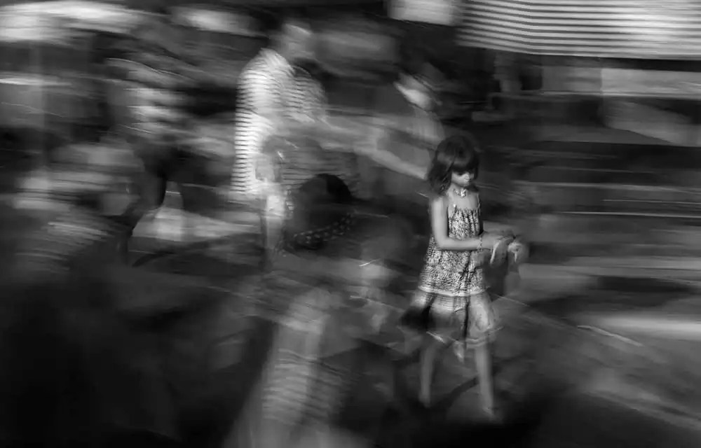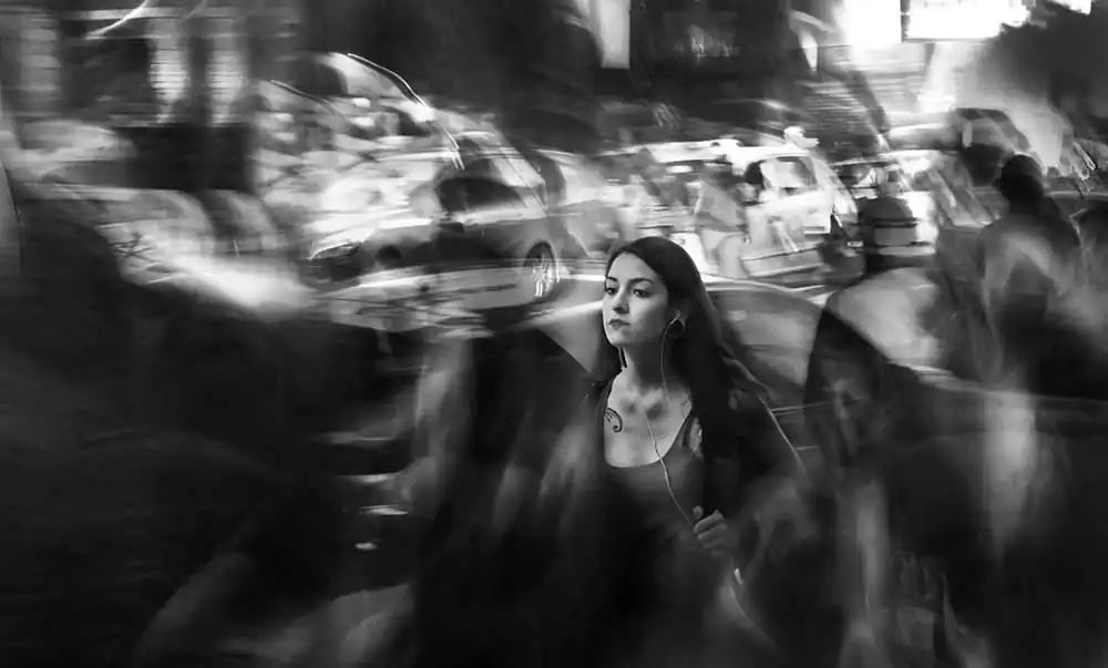 The differences that constitute people, create the scene for one of the most relevant aspects of life, the ability to see things from different points of view and as result be able to enter a world of decisions, that in part, we consider the most appropriate at the time. With this technique I reflect my hearing problem in the images, representing the noise of the city with movement and blur. [Official Website]