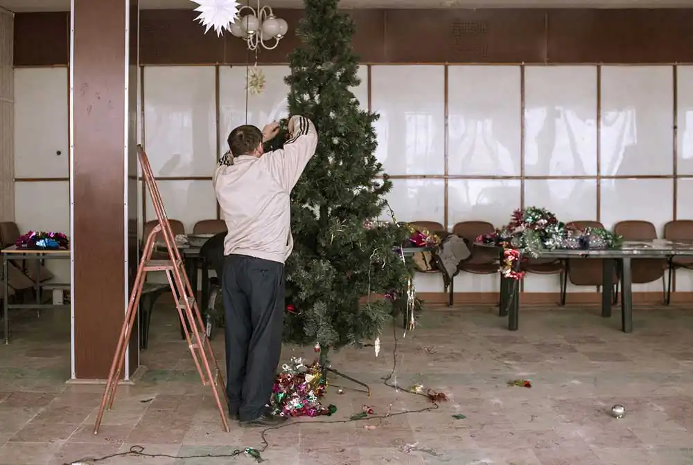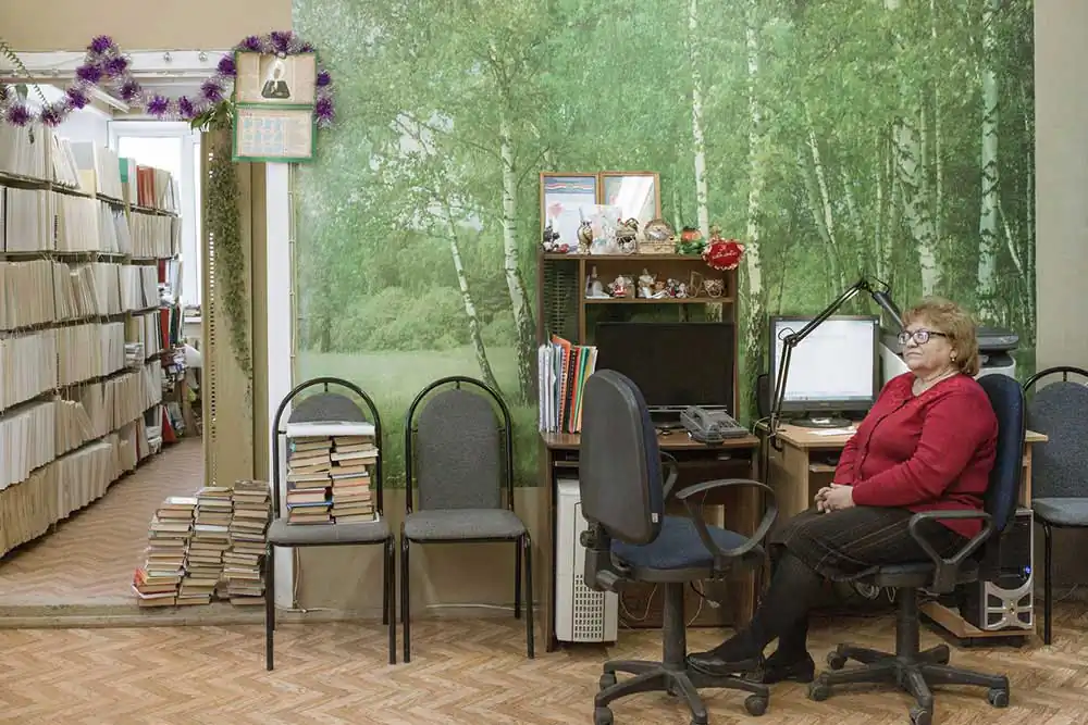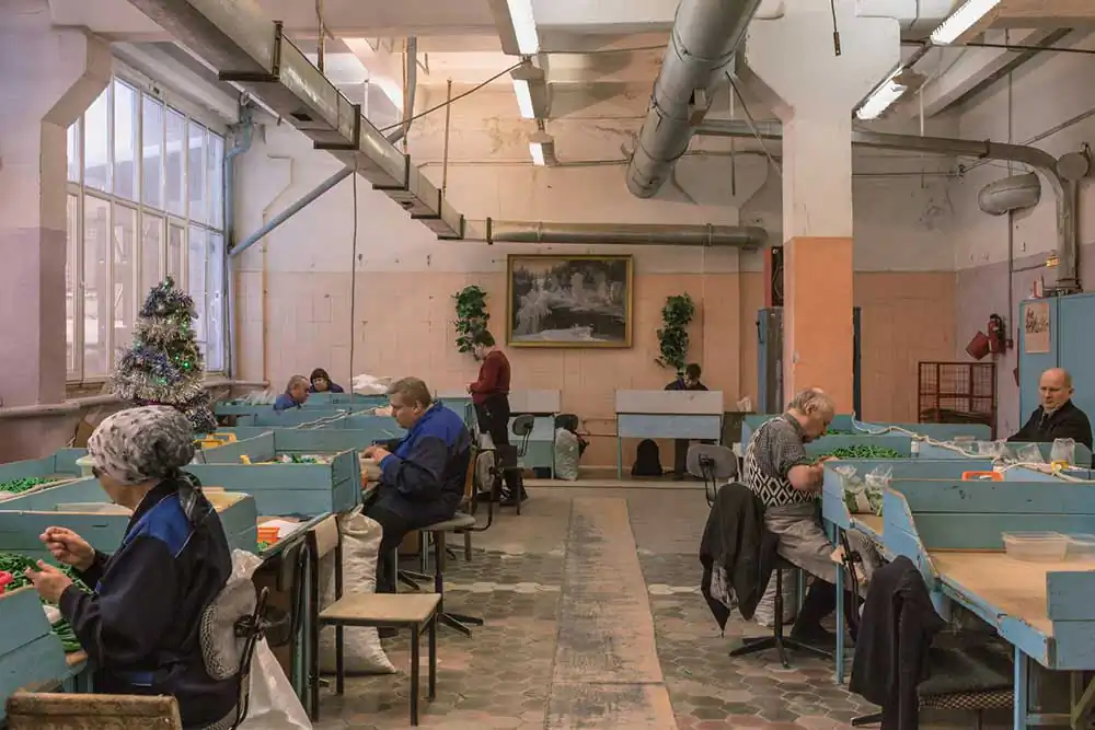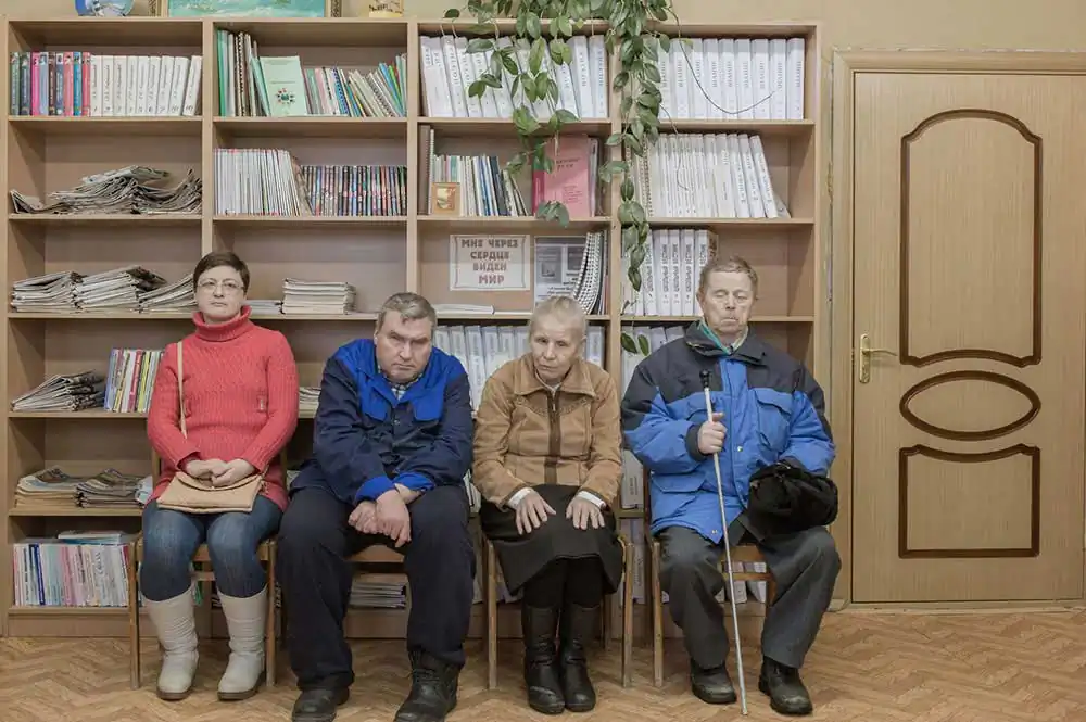 Alexander Rakovich works as Chairman of the society of the blind in Borovsky district. He lost his vision at the age of five because of flu complications. He works in Rusinovo and lives in the neighboring town of Balabanovo, where he also has the business.The evening meeting in the library devoted to A. I. Solzhenitsyn.In 1942 the house of Victor Sergeyevich Solovyov in Prudischi village in Kaluga region was bombed by an airplane: the whole Victor’s family was injured by the glass. Victor received an invitation from the Society of the blind and moved to Rusinovo in 1954. After the incident, he had a residual vision, but eventually he lost it completely.Alexander removes the toys from the Christmas tree after the New Year holidays.The production has a daily standard of 2400 pipettes per shift. Employees say that there is almost no work that should be done. Someone finish the daily standard before the work shift is over and go home earlier. Moreover, the work week is shorter than the usual one – people work just 4 days per week.Natalia Vyacheslavovna Belopuhova was born in Rusinovo and lives there till now. Vision problems were inherited from her blind parents.The first and the last steps of the stairs are marked in yellow color for visually impaired.Sergey Valentinovich Ivanov is blind since the time he was born. It was inherited from his visually impaired father. When someone asks Sergey if he wants to be sighted, he answers – «How is it possible to want something that I don’t know?’The blind people’s daily routine helps them to navigate. Many of them easily find the right way to Rusinovo just by using touch.Visually impaired people go the libraries to take books in Braille and audiobooks on flash drives. Sometimes there are literary evenings: a librarian invites a lecturer from Borovsk, which is situated close by to read the biographies of writers and their works aloud.Ivan Sergeyevich Hripunov moved to Rusinovo with his family when he was 40 years old. At that time his vision was gradually lost.Table tennis for the visually impaired called Showdown reminds about air hockey, where people are guided only by hearing and touch. The blindfold makes the game equal between the participants with residual vision and the blind.On the production the rubber tracks serve as a guide for the blind. They lead from the first floor of the building to the workshop on the third floor.Agadzhan Kakadzhanovich Khanov or just Alek, as the locals call him. He lives in Rusinovo since the time he was 23. He lost his vision after the accident.Visually impaired people from Rusinovo do not go outside of the street on their own. Their children and relatives help. They have a habit to go to a few shops where the shop assistants help them without cheating, hence they don’t go to a self-service supermarket alone. They go there very rarely and only with the relatives.On the opposite side of the production for the blind there are greenhouses where flowers are grown. Only people without disabilities work there.
