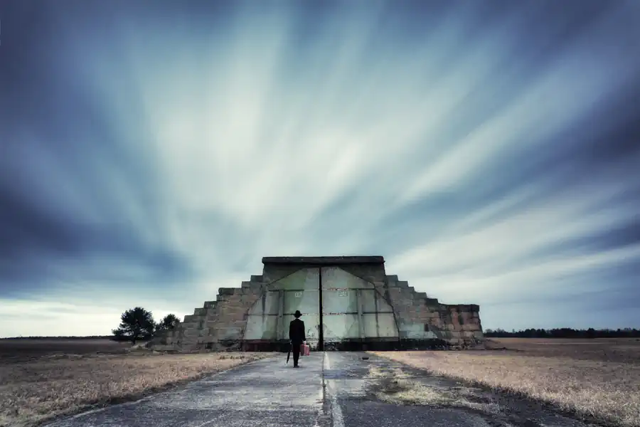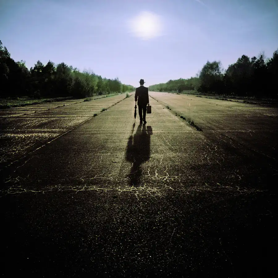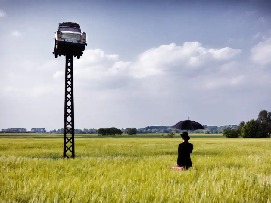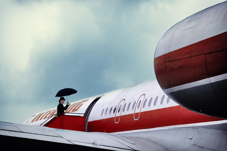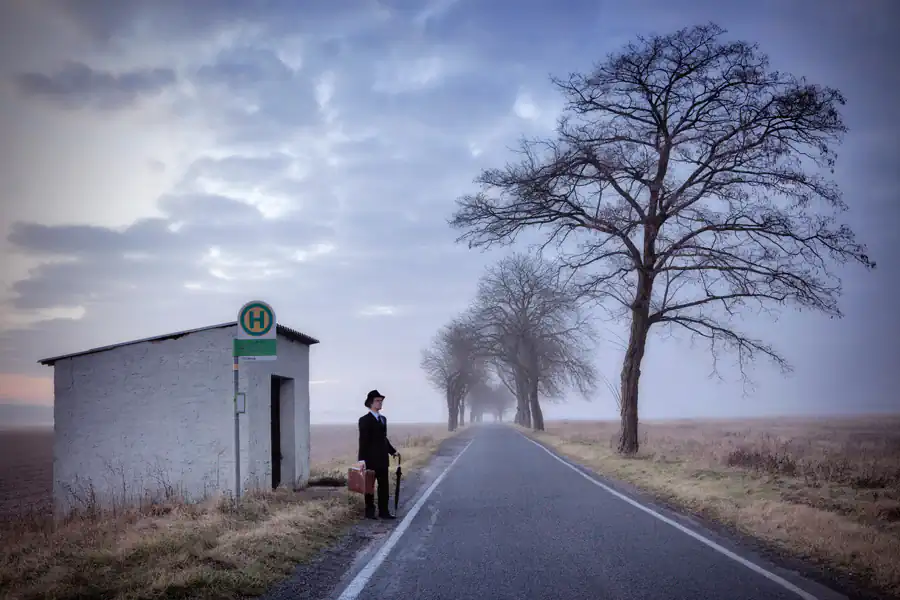 My so far most successful series ”The Traveller“ started in March 2010 with on a tour with friends when we found the old brown suitcase in a bunch of bulk waste on the street. This old suitcase and the end-of-time-feeling of the partially abandoned village where we found the suitcase fueled my imaginations of the figure of a traveller in time, who finds himself in various, sometimes odd situations. In order so serve as a connecting element in a series of pictures the traveller required a high recognition value, especially since he often appears only as a small eye-catcher. Thus I have created the archetypal and nostalgic figure of a man wearing a suit and a hat, who carries a suitcase and an umbrella. For the sake of convenience, the protagonist of the series is myself, since this model is always available. Thus, all pictures were taken using an interval self-timer. I started the series with settings in the context of travel and traffic. Yet, soon I broadened the scope of the term ”travel“ to being on the way in unusual places or through passed times. The fact that my traveller usually finds himself somehow out of place in his surrounding creates suspense. Since he always retains his composure even in bizarre situations, the picture often acquire a funny aspect that keeps the photos sticking in the mind of the viewer. Although sometimes appearing only as a small person ”The Traveller“ is always the eye-catcher of the photo and enhances the attention of the viewer for the scenery he is acting in. The individual images of the series are no consecutive sequence. Each image should tell its own story and evoke different emotions in the viewer. Between 2010 and 2013 I exhibited pictures of this series in seven well acclaimed exhibitions in Berlin, Potsdam, Munich and Neubrandenburg. At the 4th Kunstallee Potsdam (an arts fair) from August 19th till 21st, 2011, I won the Arts Price in an election of the approximately 4000 visitors. Several photos won prices in national and international photo contests. The biggest success was a Gold Medal of Excellence for ”In The Cold“ at one of the biggest international photo contests, the Trierenberg Super Circuit 2011. [Official Website]