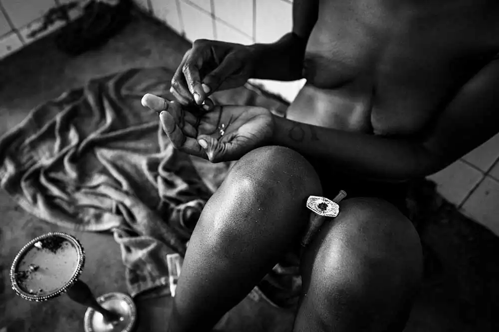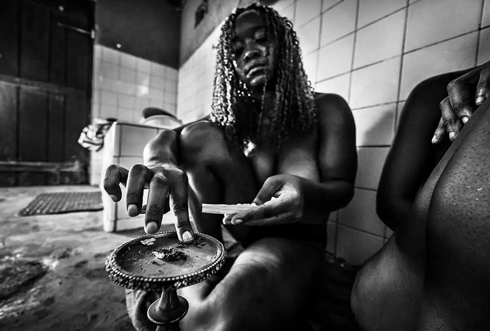 The line between the life at night and the world of drugs is very faint and Gina crosses it very early. Seductive and always nurturing, the drug was always available to give her the comfort she sought in times when discouragement or despair spoke louder. Why resist it if it brings her a peace and tranquility without preconceptions or regrets that she can’t remember having in her whole life? When she inhales the smoke and holds it in her lungs, waves of pleasure gently invade her body and invite her muscles to relax, as if she were living a dream from which there is no need to wake up. In this dream, which snuggles her and enfolds her lovingly, Gina doesn’t relive the traumas of her adolescence that insist on not leaving her, nor does she remember the smell of men that remain on her skin when she wakes up in the morning. In this dream, no one accuses or recriminates her for the life she lives, perhaps this is why she feels redeemed from a life made up of what are said to be sins.