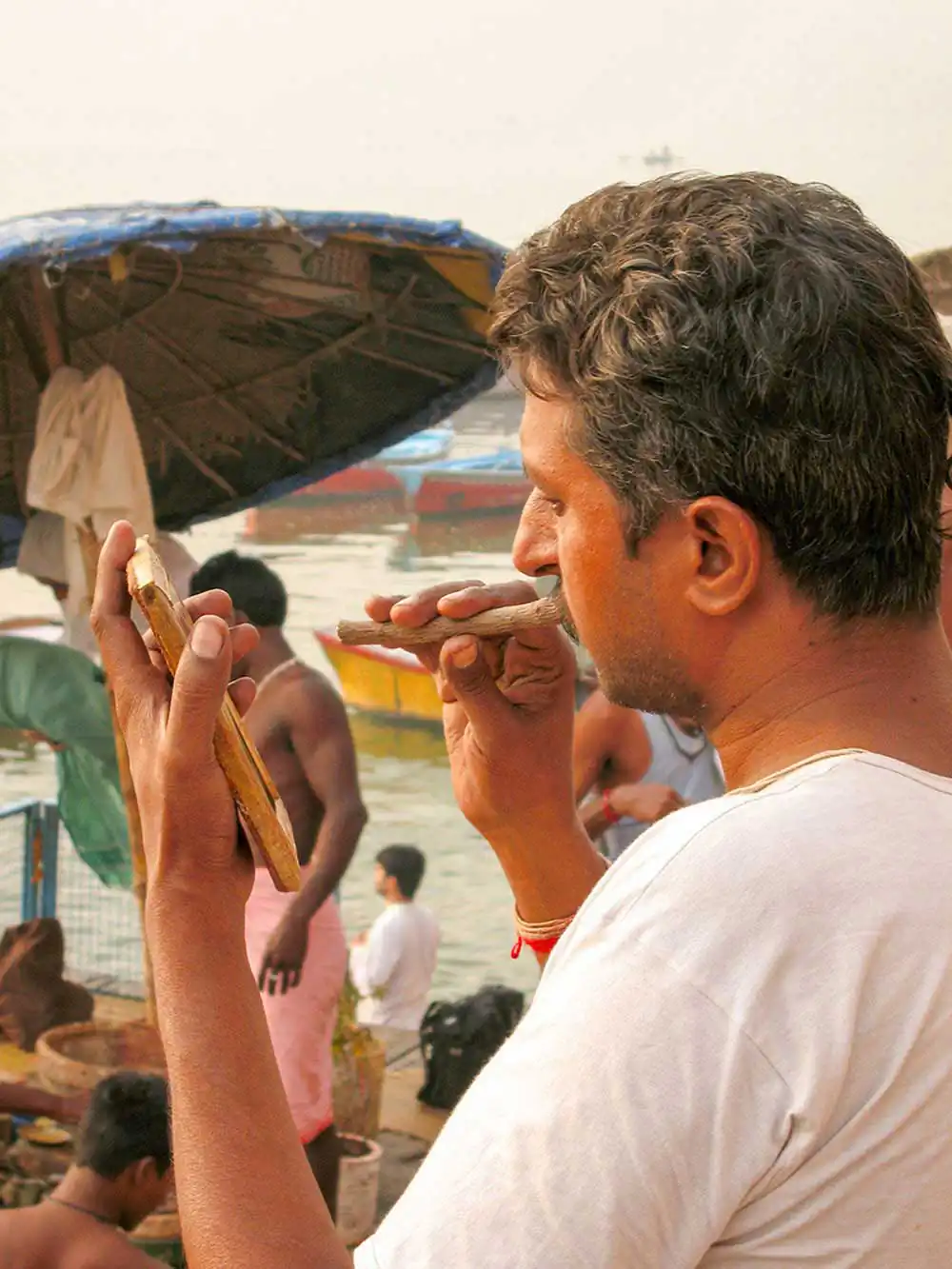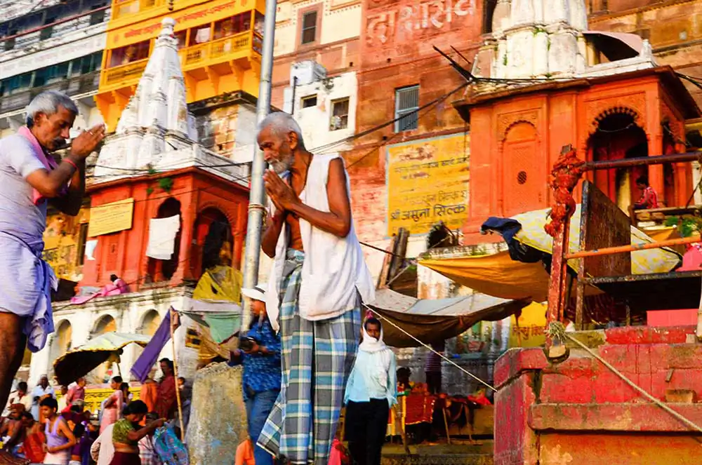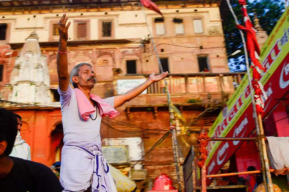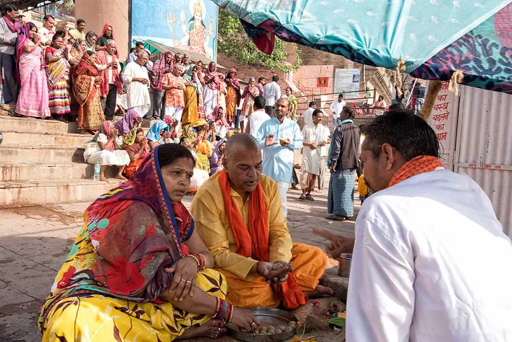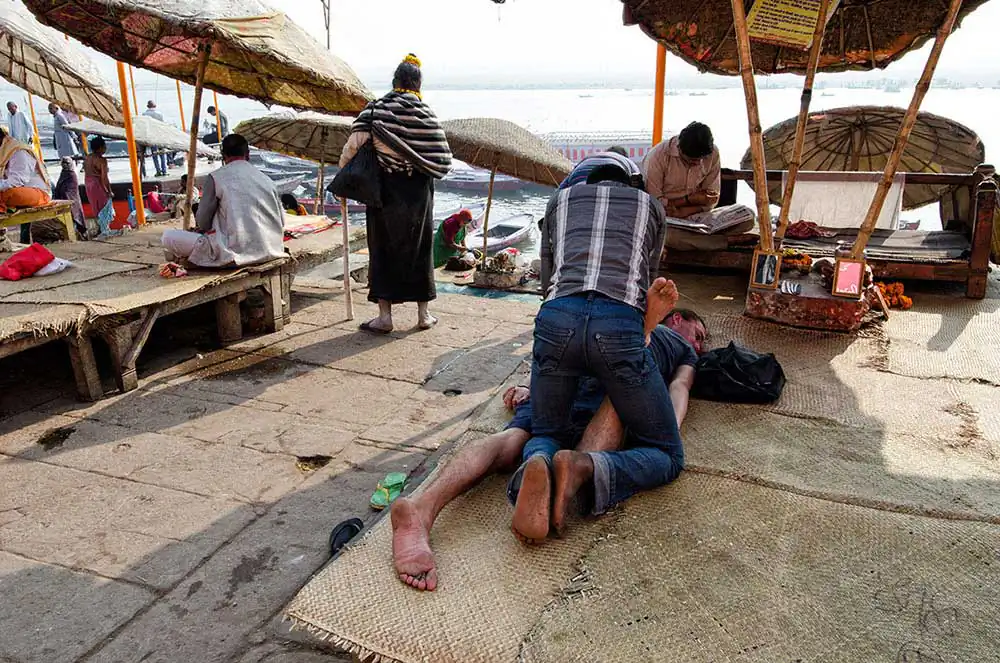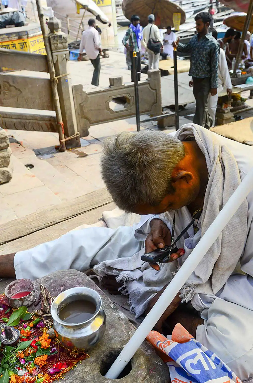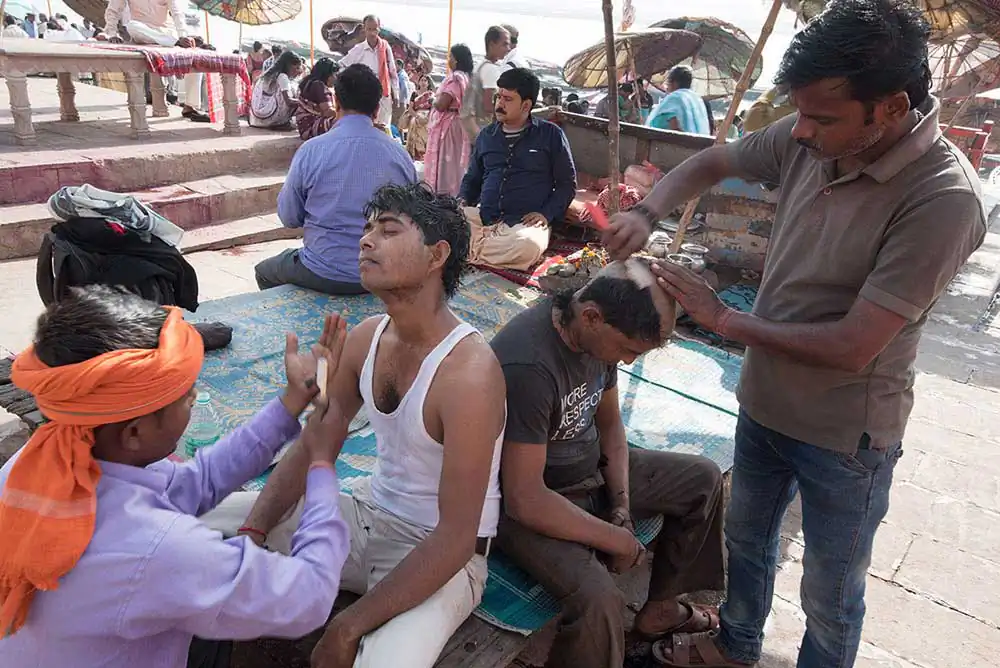“And every action has a story behind it! Just be here and take notes of those and you get the best story of life…” He looked at my camera and the indication was very obvious…. Shoot, shoot and shoot… it’s the stage you get it what you are looking for! I do not remember the year when this interaction took place as I am visiting Varanasi for more than a decade. Every year was different, every day was different and every moment was different! Varanasi Ghats are full of actions and every story either starts or ends up over there! From morning to evening, the Ghats are full of activities other than the ritual of The Ganga Arti which takes place twice in a day. But the Ghats talk and it has a language! I could hear that beyond the gong of the bell. Sometimes it murmurs and sometimes it is silent with vivid activity which speaks for itself! Be it a kite runner, or the morning prayers or could it be the old woman taking her time to put the holy dots on her forehead, I could find that someone is very closely narrating the life! I saw the joy in a child’s face after catching a running kite, locals spending a relaxed time together or a very serious religious ceremony being performed by a couple in front of a priest. Even a disability is overcome by sheer determination when someone comes to take the holy bath in The Ganges! Be it a marriage to be performed or offerings to ancestors, the extremities are worth looking at. The Ghats are places to pray, for the business of getting clients to perform religious rituals as well as a regular for the barber to shave the head as death is the only constant!