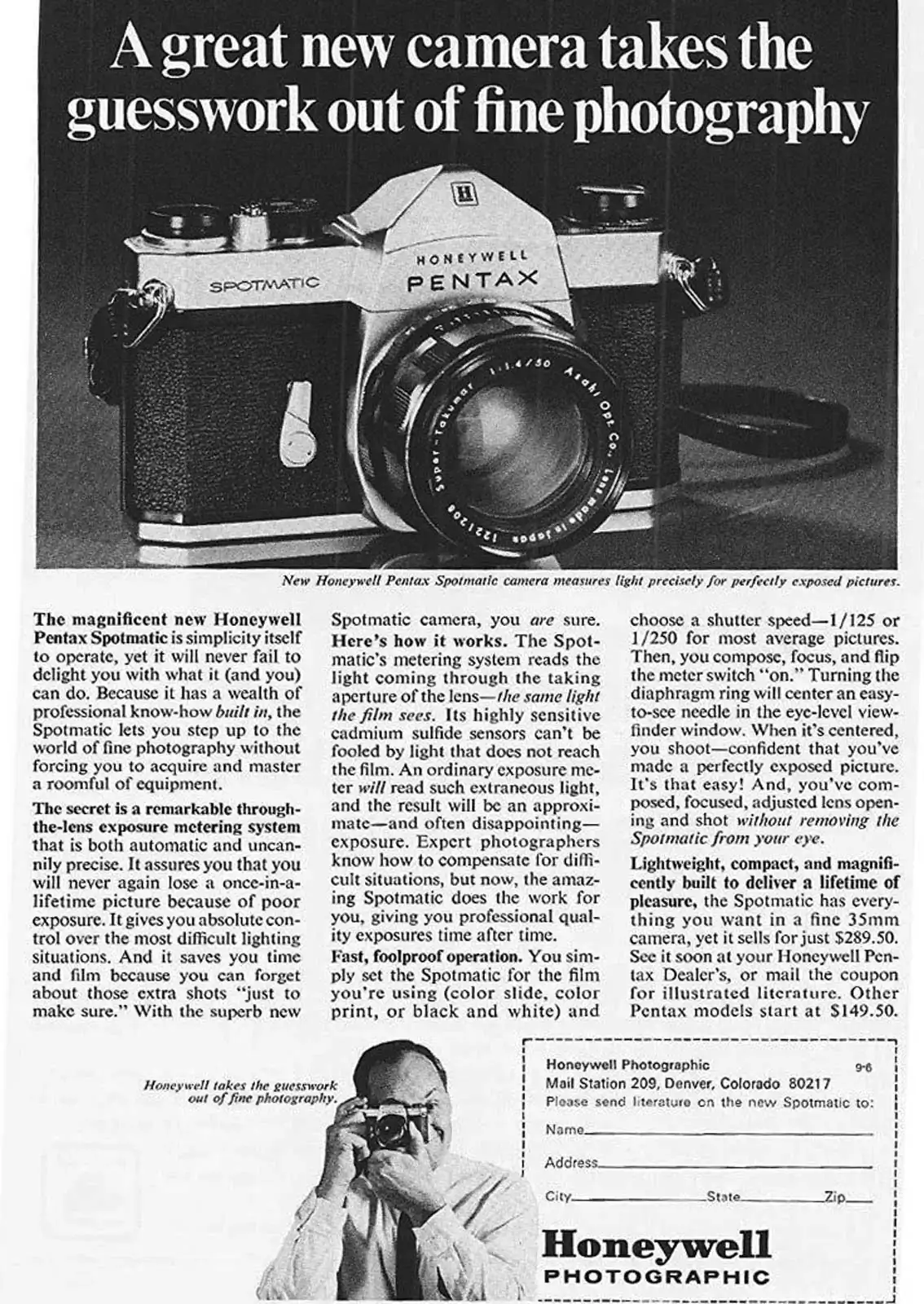 Her Pentax was a mess, and I was proud of her and it. She used the hell out of it, and she made good images as far as I could tell. The polarizer on the lens had a dent and a crack, and it wouldn’t come off. Taking the lens off, the mirror was filthy, and the viewfinder was like looking through an old garage window.