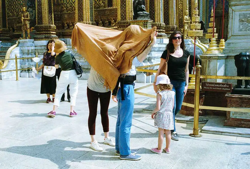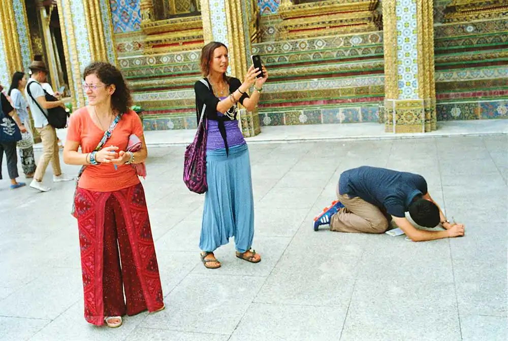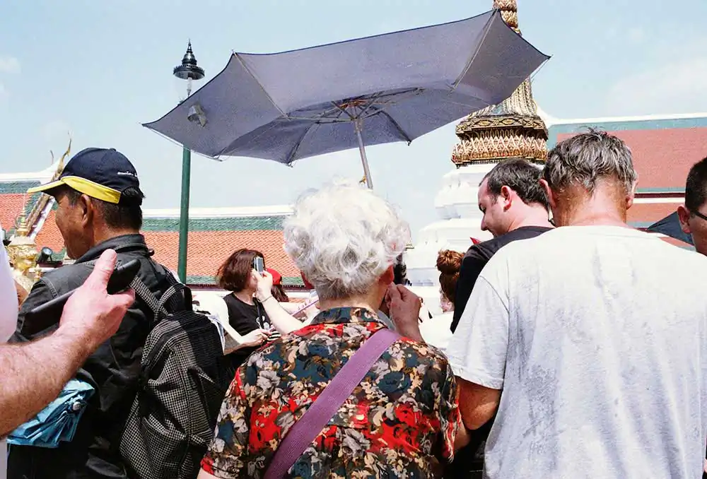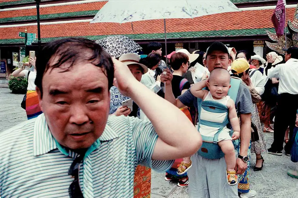 This Project is about “Wat Phra Kaew”. Wat Phra Kaew is regarded as the most sacred buddhist temple in Thailand. Everyday, Wat Phra Kaew is full of tourists from around the world. So, I aim to present some story apart from its peaceful atmosphere. Tourists’ characters, postures, or actions are my main interests. Wat Phra Keaw is the 1st place of Bangkok tourist attraction. But seems like 90 percent of Thai people visit there just once or none. So, I would like to present what are the current happenings there; what do these tourists see and do, from my perspective.